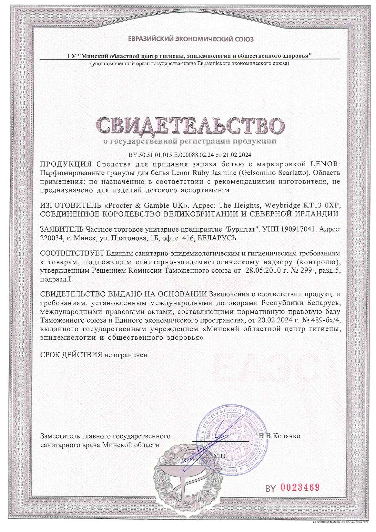LENOR "Ruby Jasmine (Gelsomino Scarlatto)" – это концентрированный парфюмированный кондиционер для стирки любого вида текстиля. Имеет приятно жасминовый аромат.