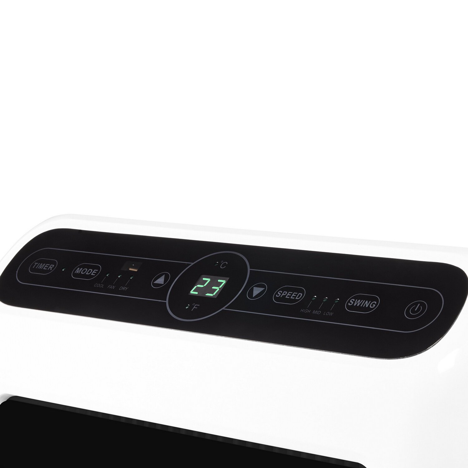 Данная модель оснащена режимами осушения, вентиляции и охлаждения, которые управляются при помощи электронных кнопок или пульта ДУ. На основании расположены колесики для комфортного перемещения.
