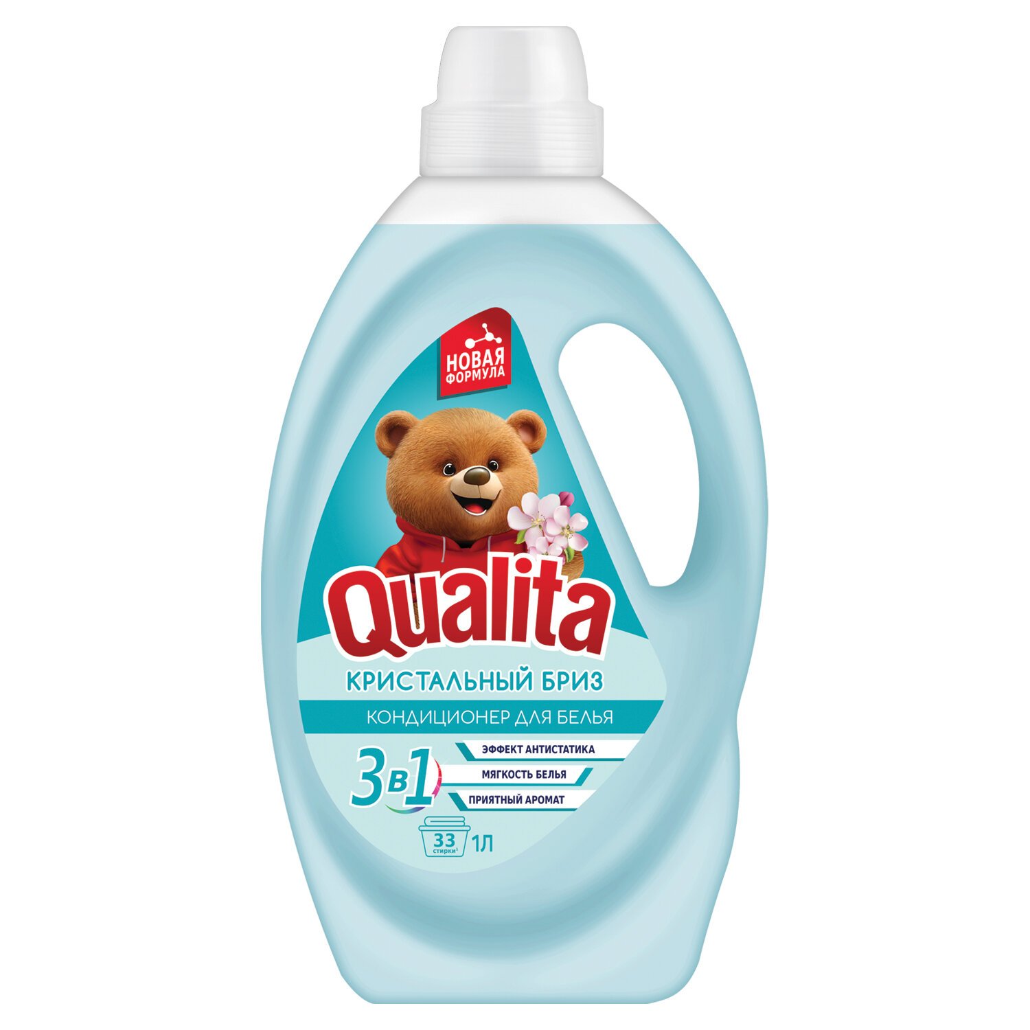 Кондиционер-ополаскиватель для белья 1л QUALITA "Кристальный бриз", с антистатиком, 13823