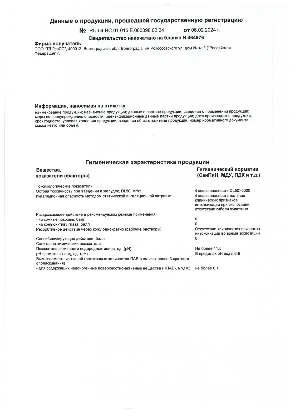 Меры предосторожности: беречь от детей! Хранить вдали от пищевых продуктов. При попадании в глаза немедленно промыть водой. При чувствительной коже и повреждениях кожи избегать длительного контакта со средством.