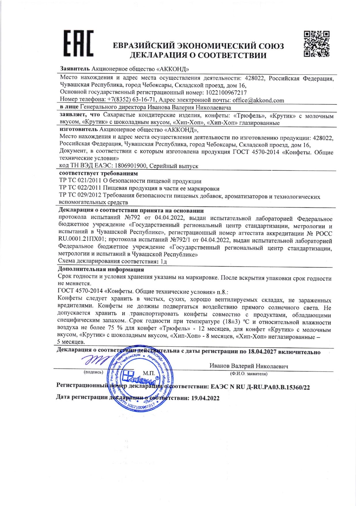 Конфеты АККОНД "Трюфель классический", 1000 г