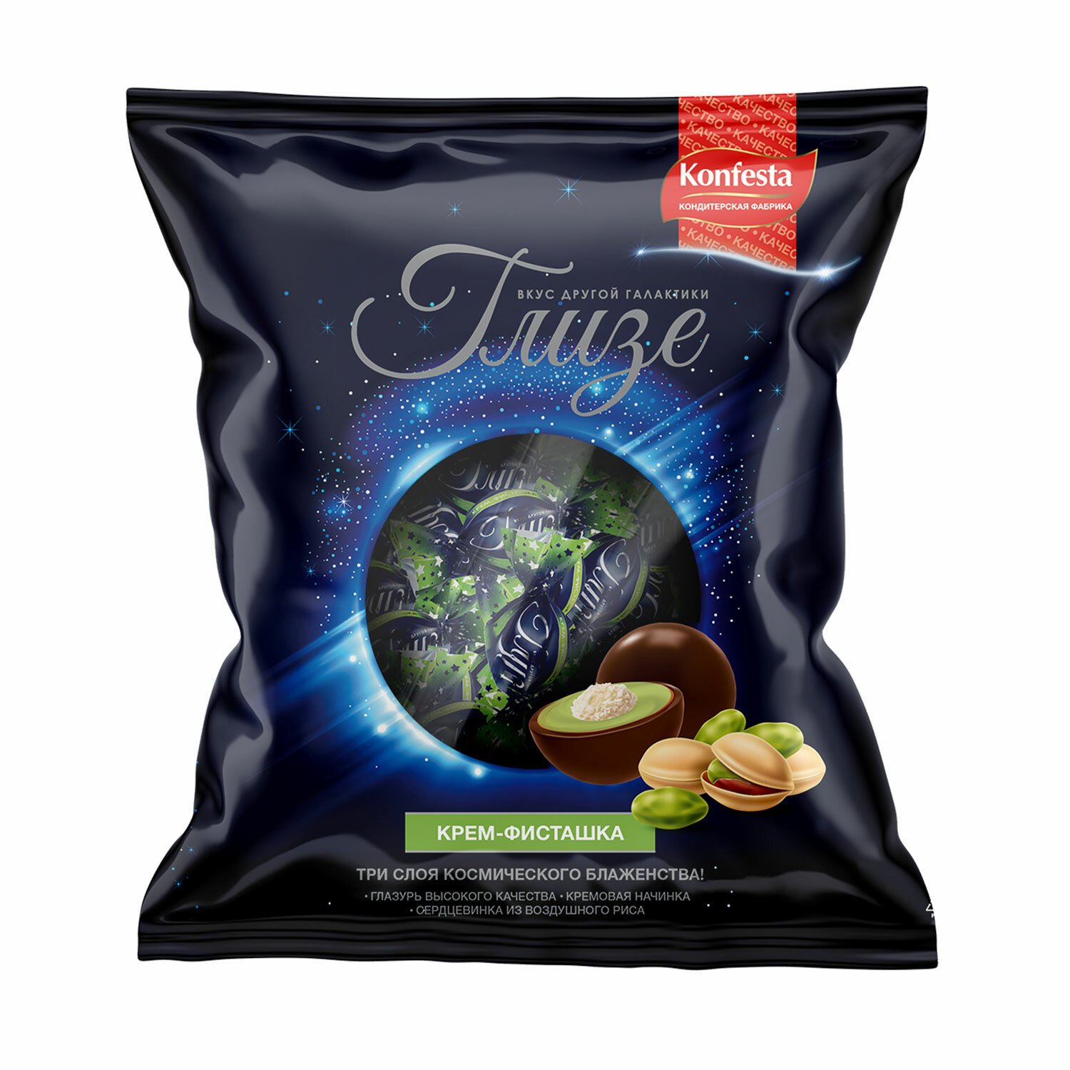 Конфеты ГЛИЗЕ с кремовой начинкой со вкусом "Фисташка" и воздушным рисом, 500 г, пакет
