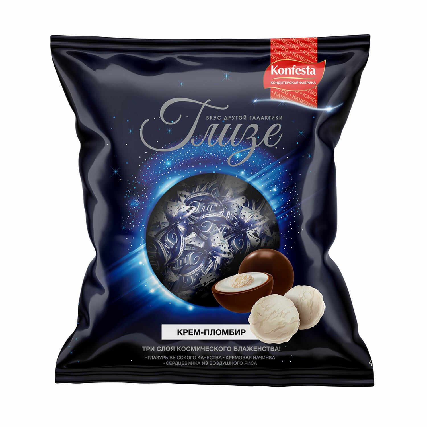 Изысканные конфеты ГЛИЗЕ - идеальное сочетание нежнейшего воздушного риса и кремовой начинки со вкусом пломбира! Конфеты покрыты нежной глазурью, а под ней - тающая во рту кремовая начинка и хрустящий воздушный шарик.