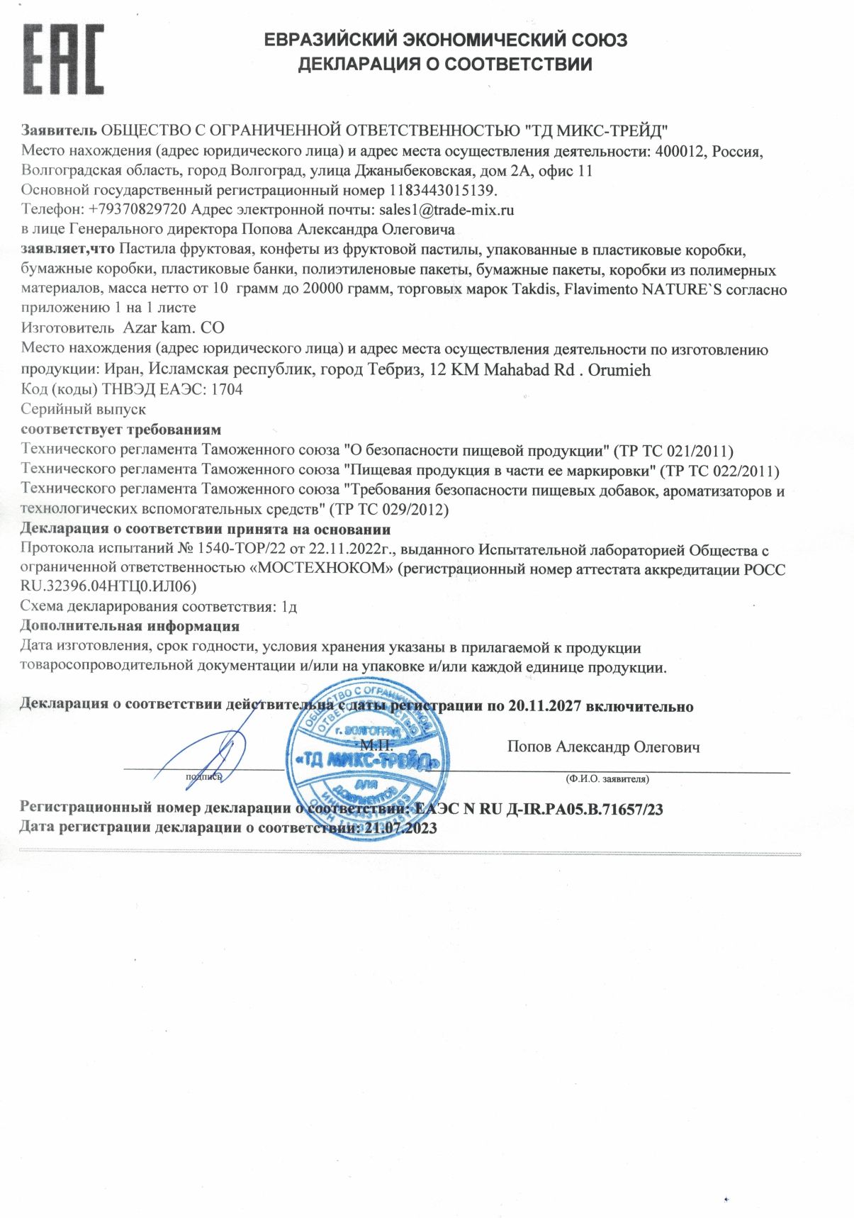Конфеты из фруктовой пастилы TAKDIS, ассорти, 1000 г, УТ-00002264