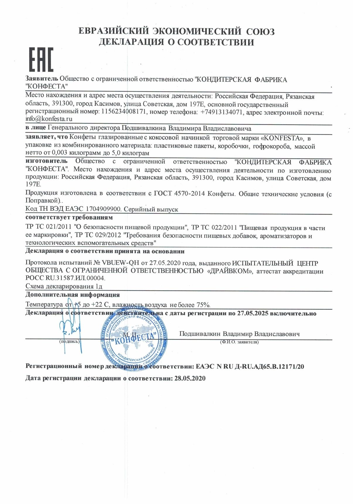 KONFESTA - вкусные лёгкие конфеты в форме трубочек, с нежным сливочным кремом в хрустящей вафле и обсыпке из ароматной кокосовой стружки.