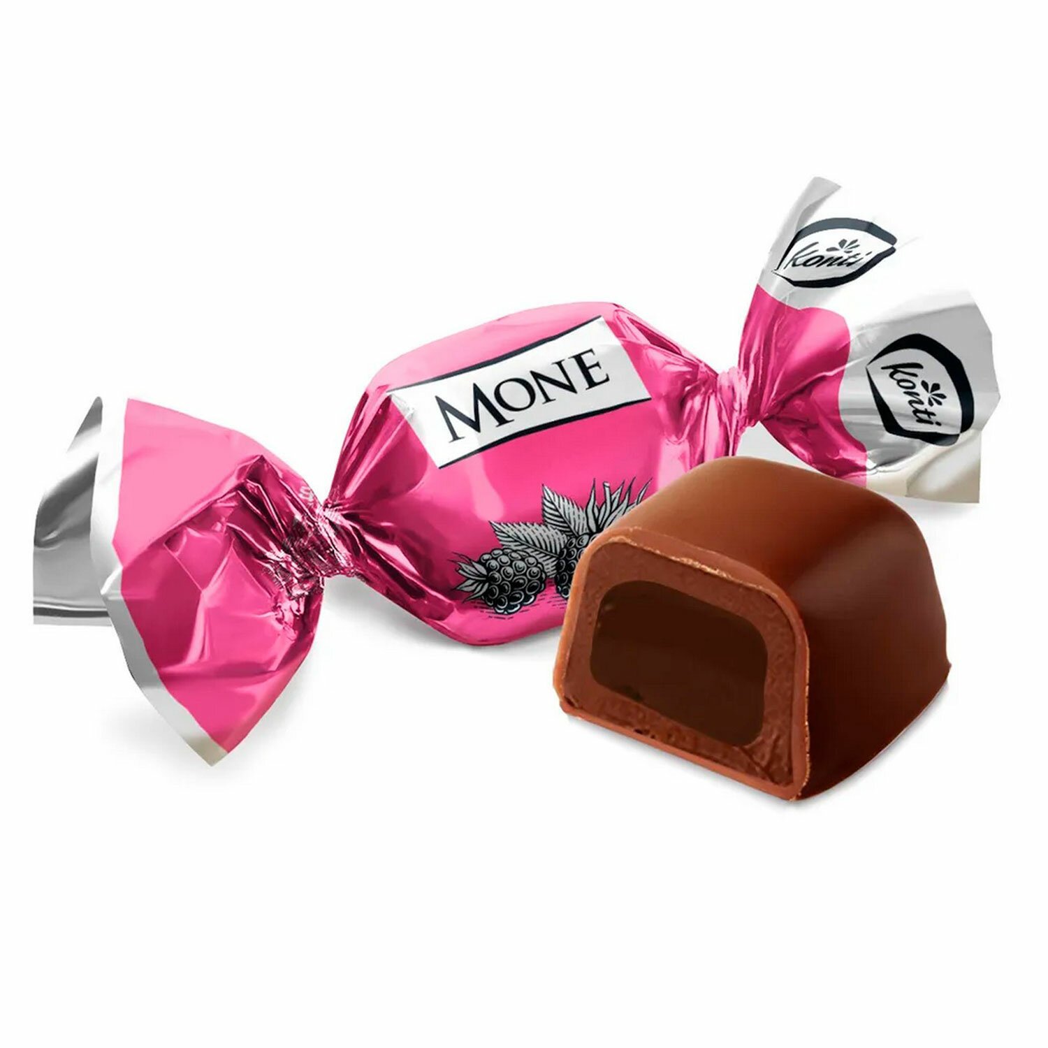 Глазированные кремовые конфеты KONTI "Моне" со вкусом и ароматом малины и трюфеля.