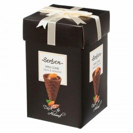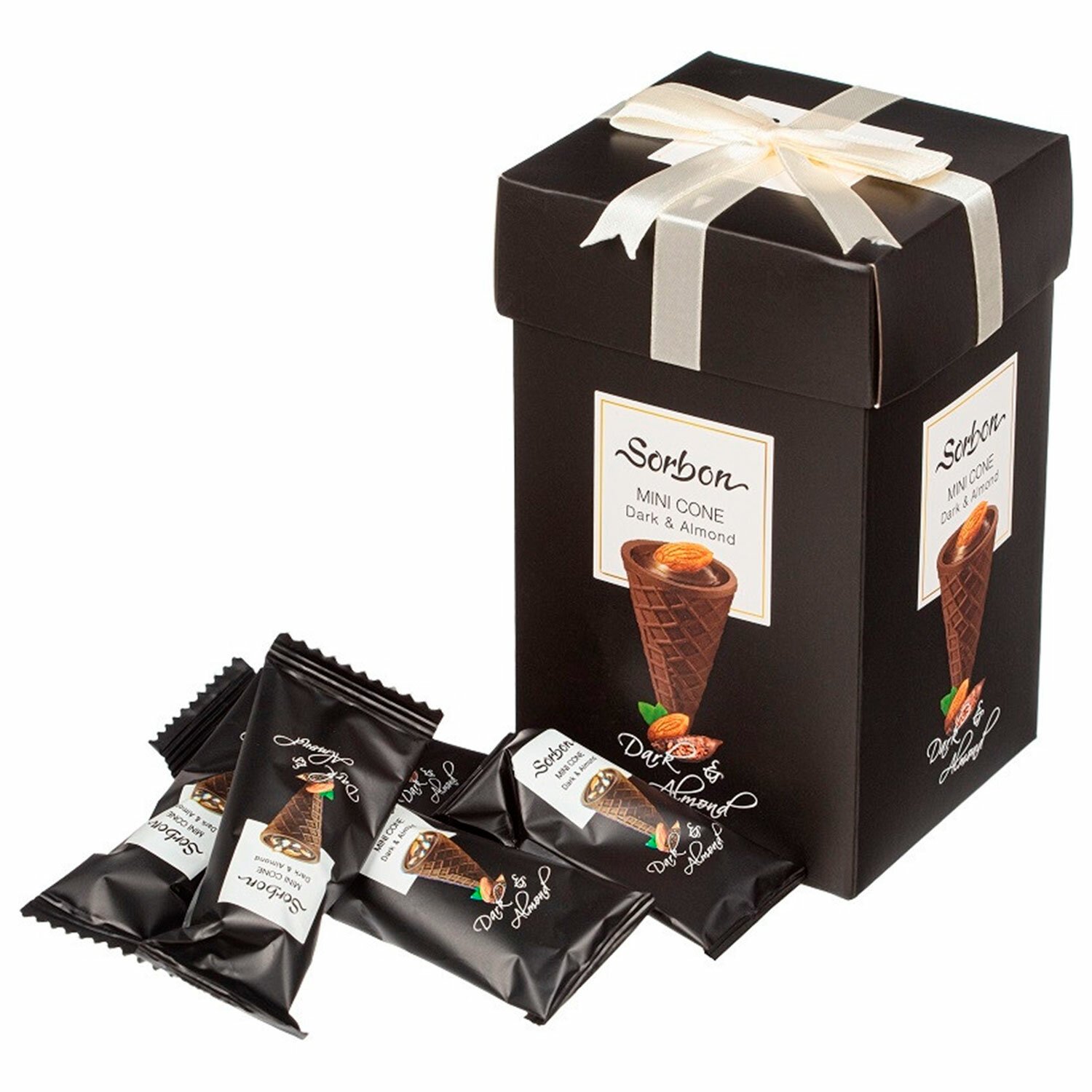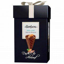 Мини-рожки SORBON "Миндаль и воздушные зерна" – набор, состоящий из хрустящих вафельных мини-рожков с нежной начинкой из горького шоколада, воздушных зерен и миндаля.