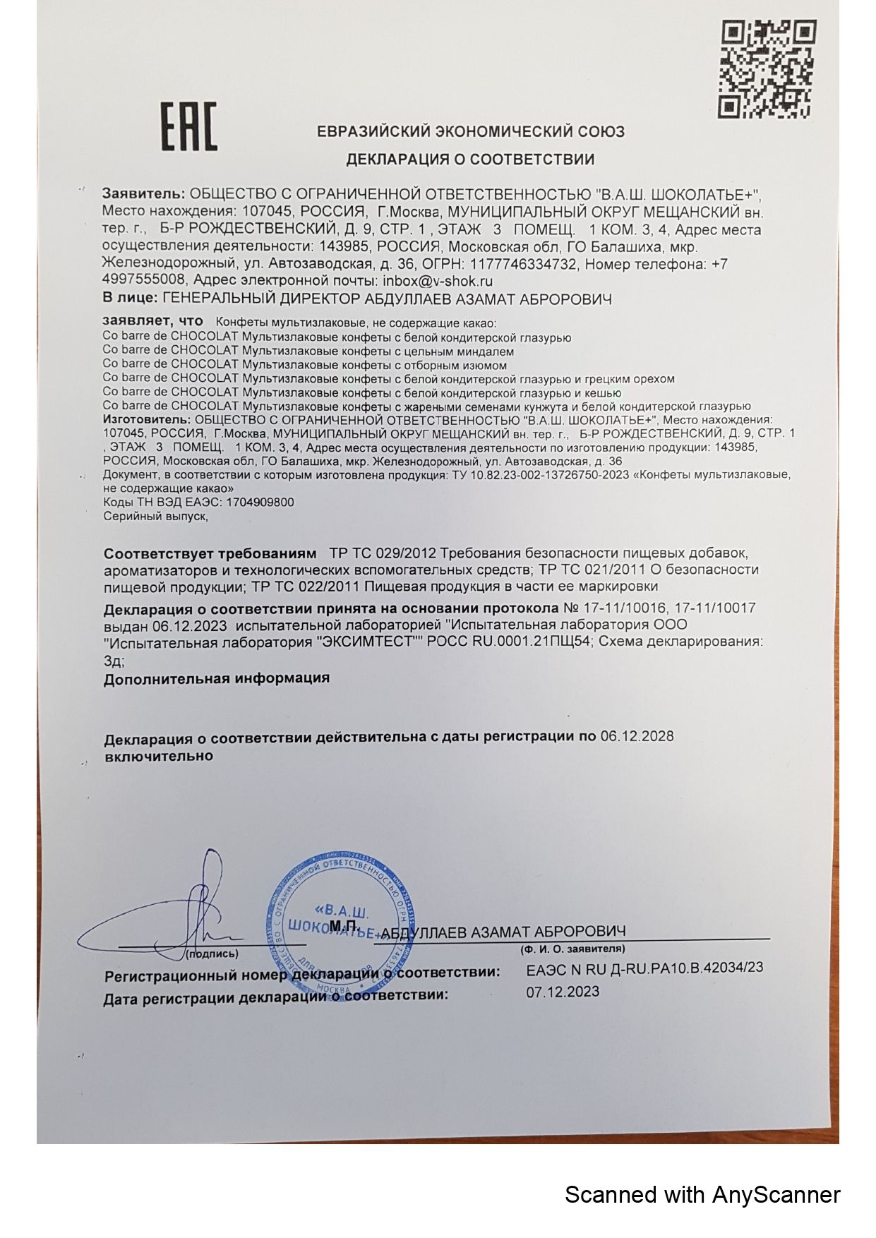 | Фирма-производитель | В.А.Ш. Шоколатье |
