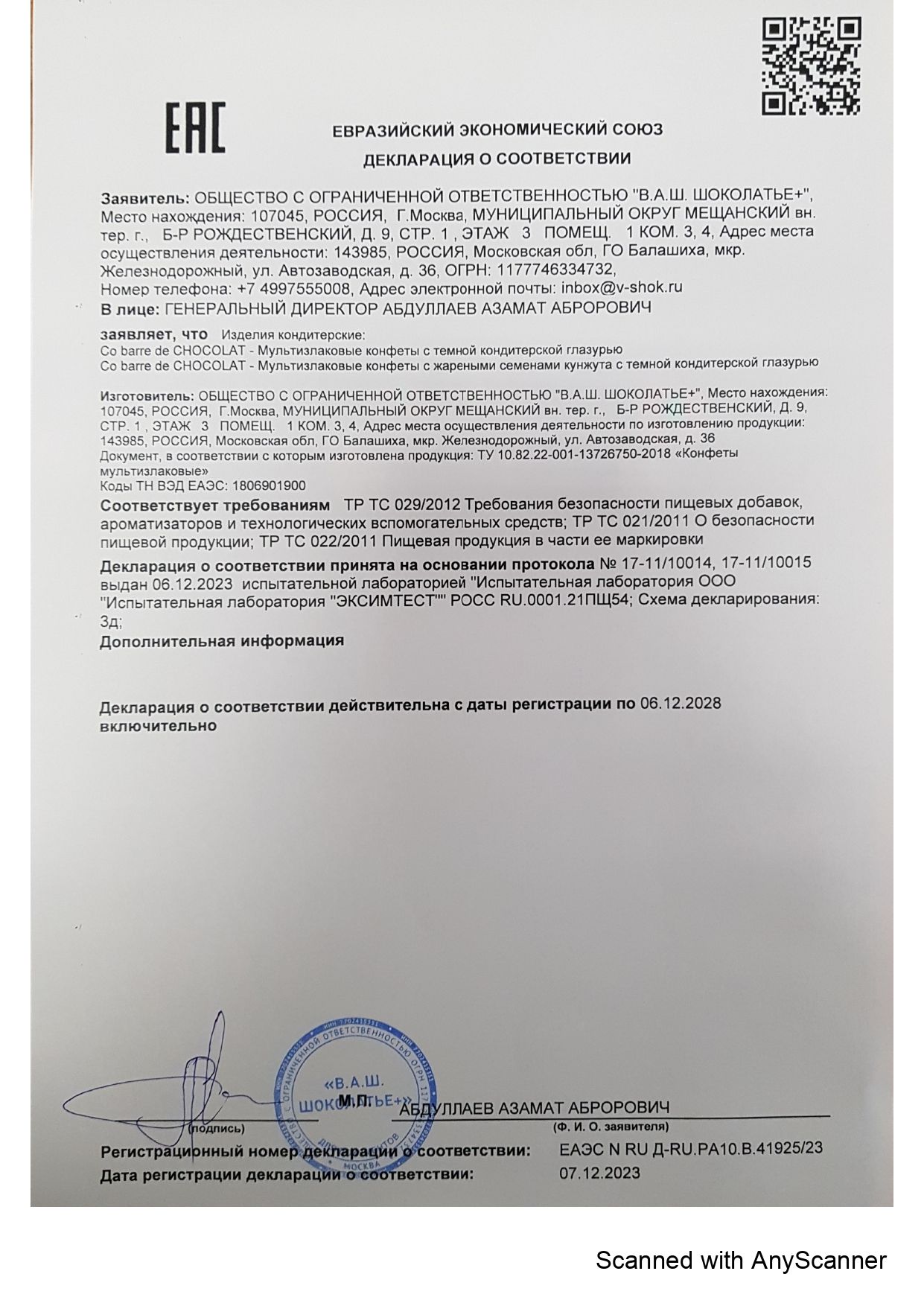 | Фирма-производитель | В.А.Ш. Шоколатье |