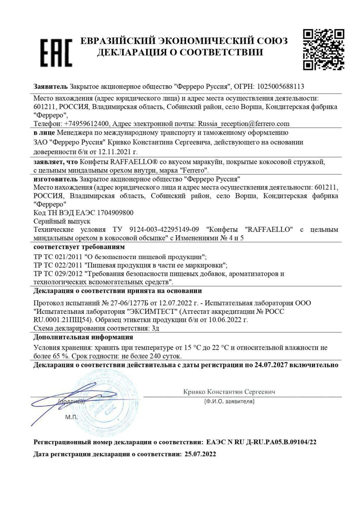 | Фирма-производитель | ЗАО "Ферреро Руссия" |