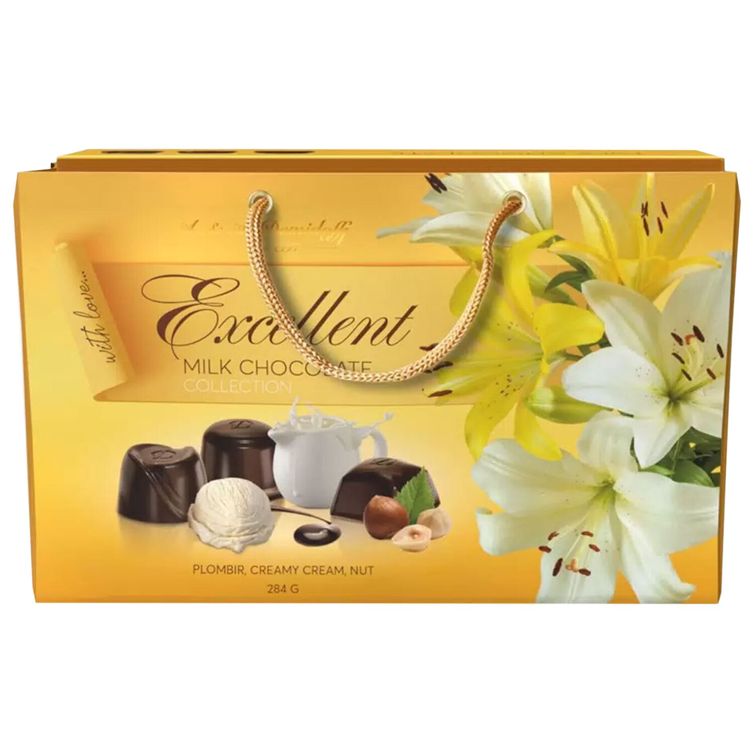 Конфеты шоколадные A&A DEMIDOFF с начинками пломбир, крем-сливки, орех 284 г