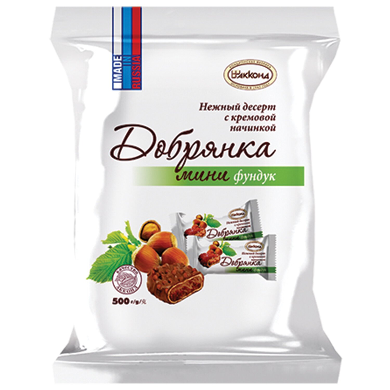 Конфеты шоколадные АККОНД "Добрянка" мини-десерт, с кремовой начинкой из фундука, 500 г