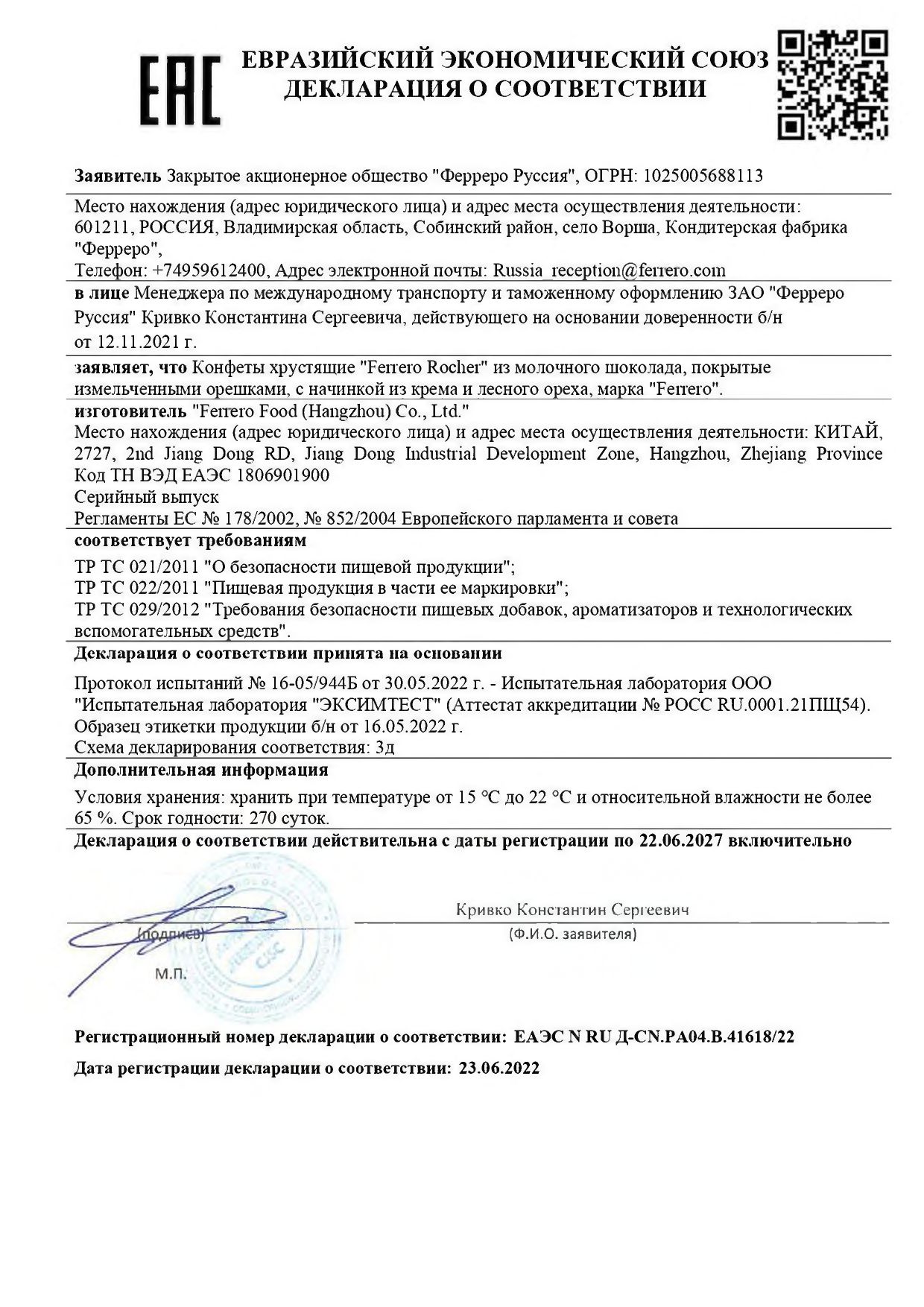 Состав: молочный шоколад (сахар, масло какао, тертое какао, сухое обезжиренное молоко, молочный жир, эмульгатор: лецитины, ароматизатор), лесные орехи, сахар, растительный жир, пшеничная мука, сухая молочная сыворотка, обезжиренный какао-порошок, эмульгатор: лецитины, разрыхлитель: гидрокарбонат натрия, соль, ароматизатор. Содержит орехи, молоко, злаки, содержащие глютен, сою и продукты их переработки.