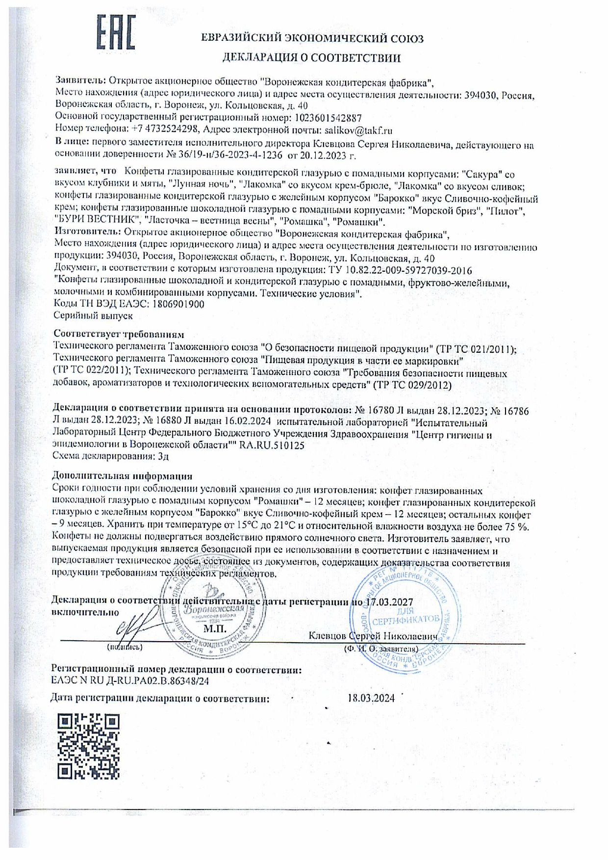 Конфеты шоколадные КРАСНЫЙ ОКТЯБРЬ "Барокко", сливочно-кофейный крем - двухслойные конфеты из сливочного желе с нежным сливочно-кофейным вкусом.