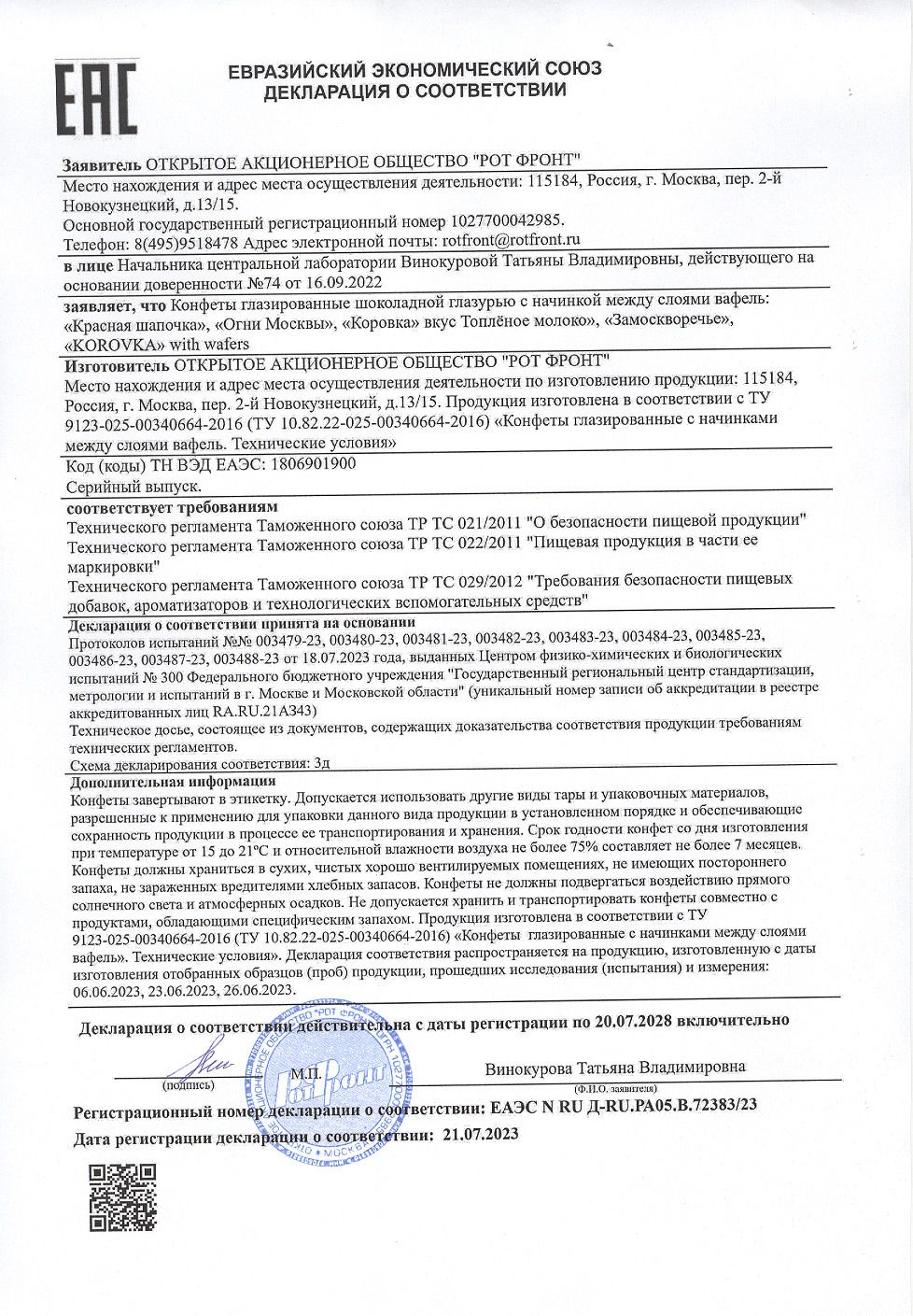 Вафли РОТ ФРОНТ "Коровка" со вкусом топленого молока, 150 г, РФ06638