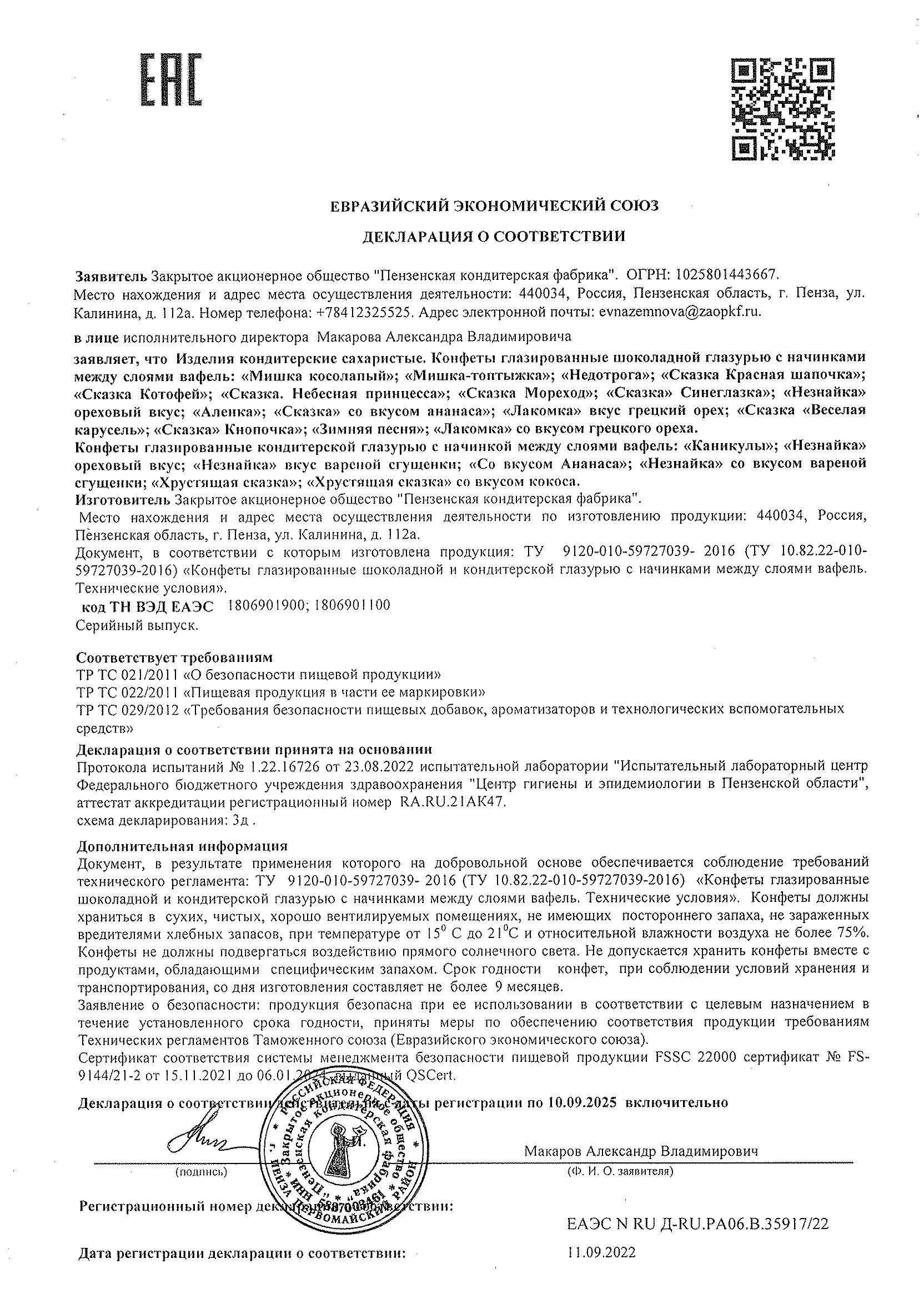 Конфеты шоколадные "Мишка косолапый" - это нежное пралине из жареного тертого миндаля с ароматом ванили между слоями вафель. Отлично подходят в качестве десерта к чаю или кофе.