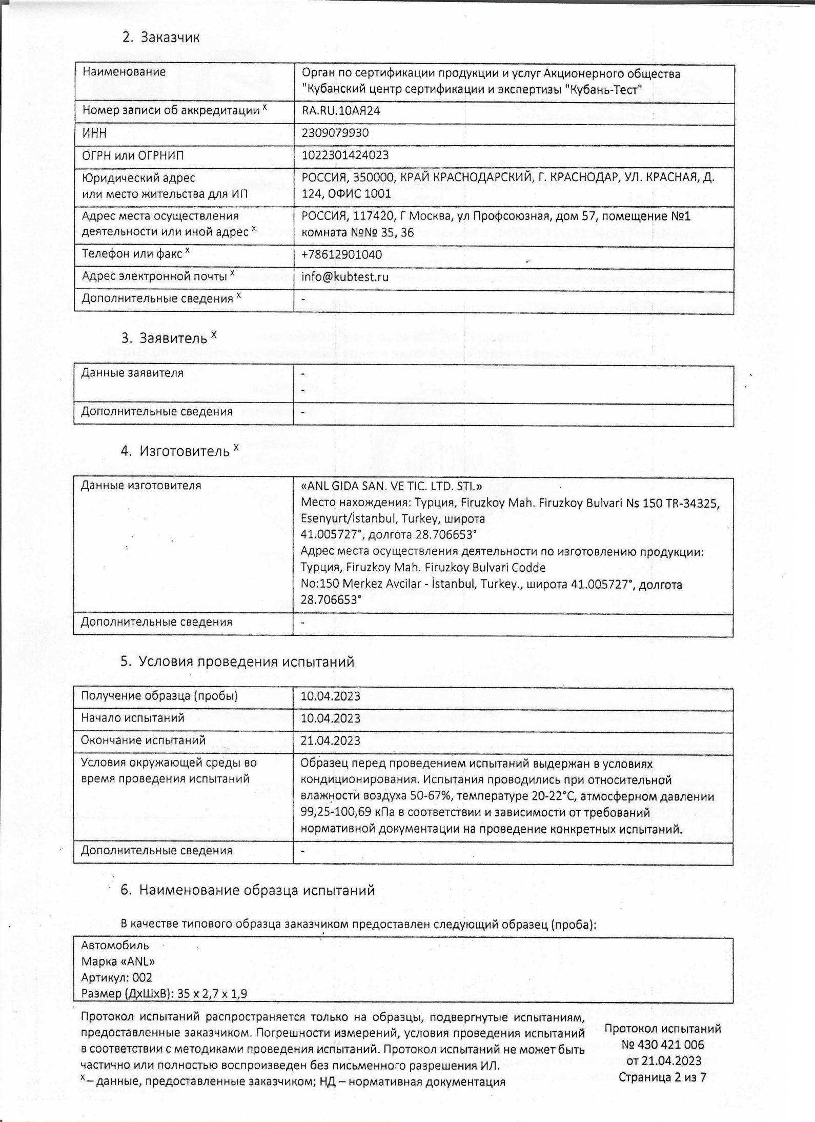 | Фирма-производитель | ANL |