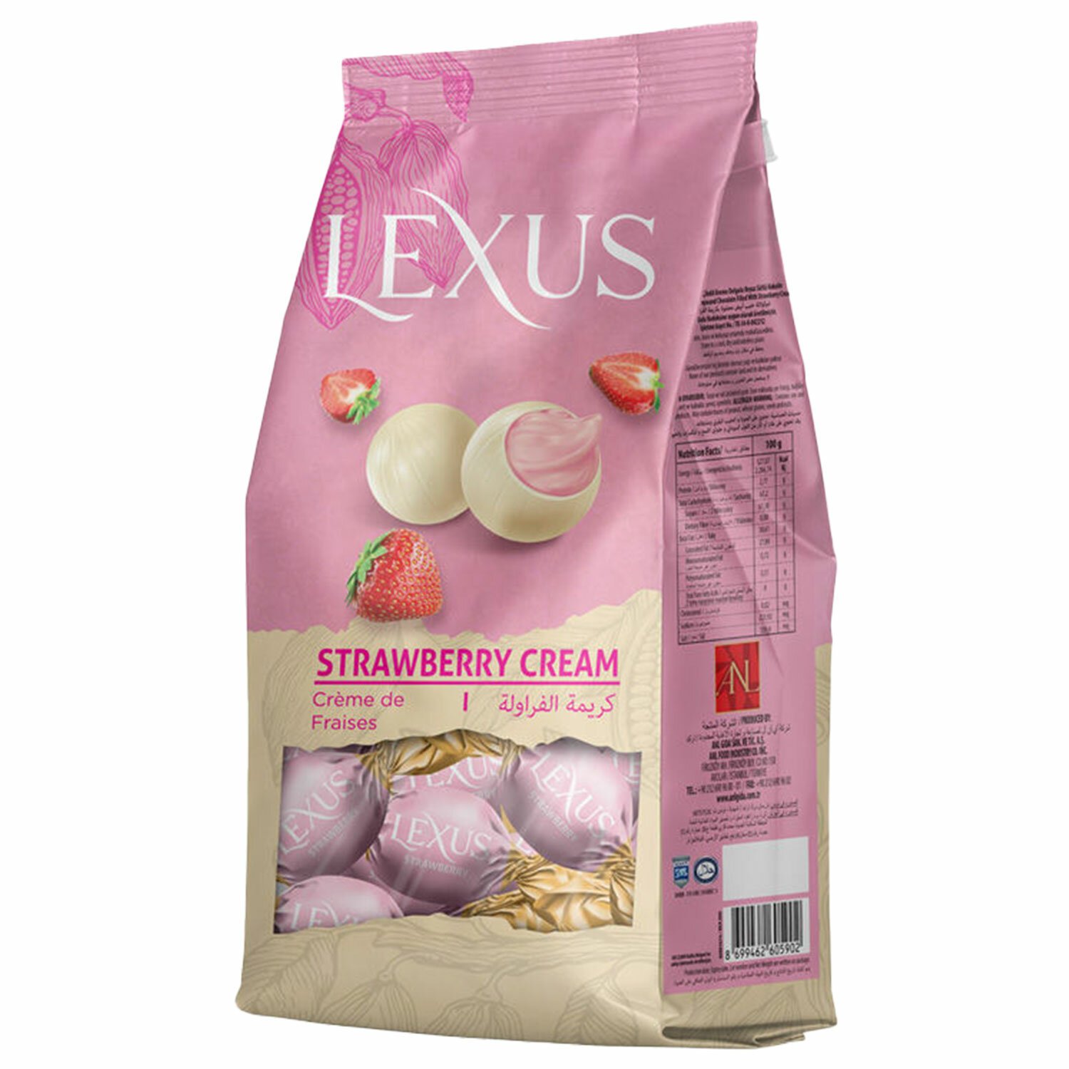 Конфеты шоколадные LEXUS "Strawberry", с белым шоколадом и клубничным кремом, 200 г, ТУРЦИЯ, 1413