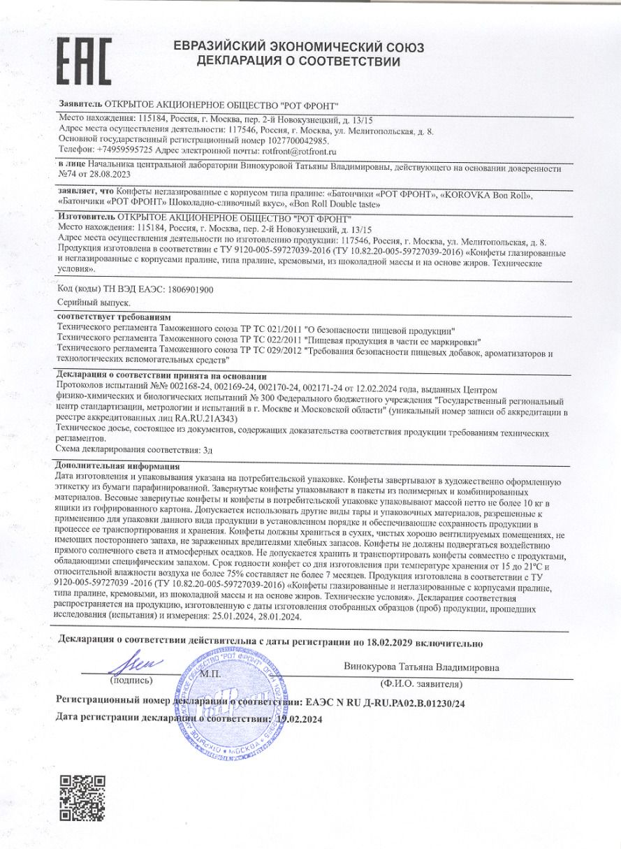 Конфеты РОТ ФРОНТ «Батончики» — это легендарные неглазированные батончики, созданные из плотного пралине с орехово-сливочным вкусом, нотками какао и хрустящими вафельными крошками.