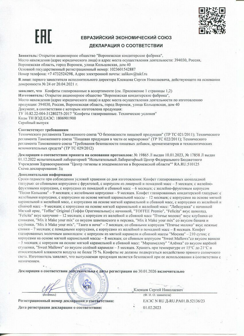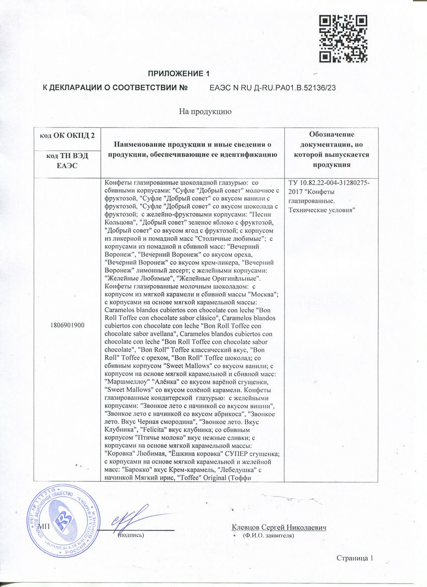 | Фирма-производитель | "Объединенные кондитеры" |