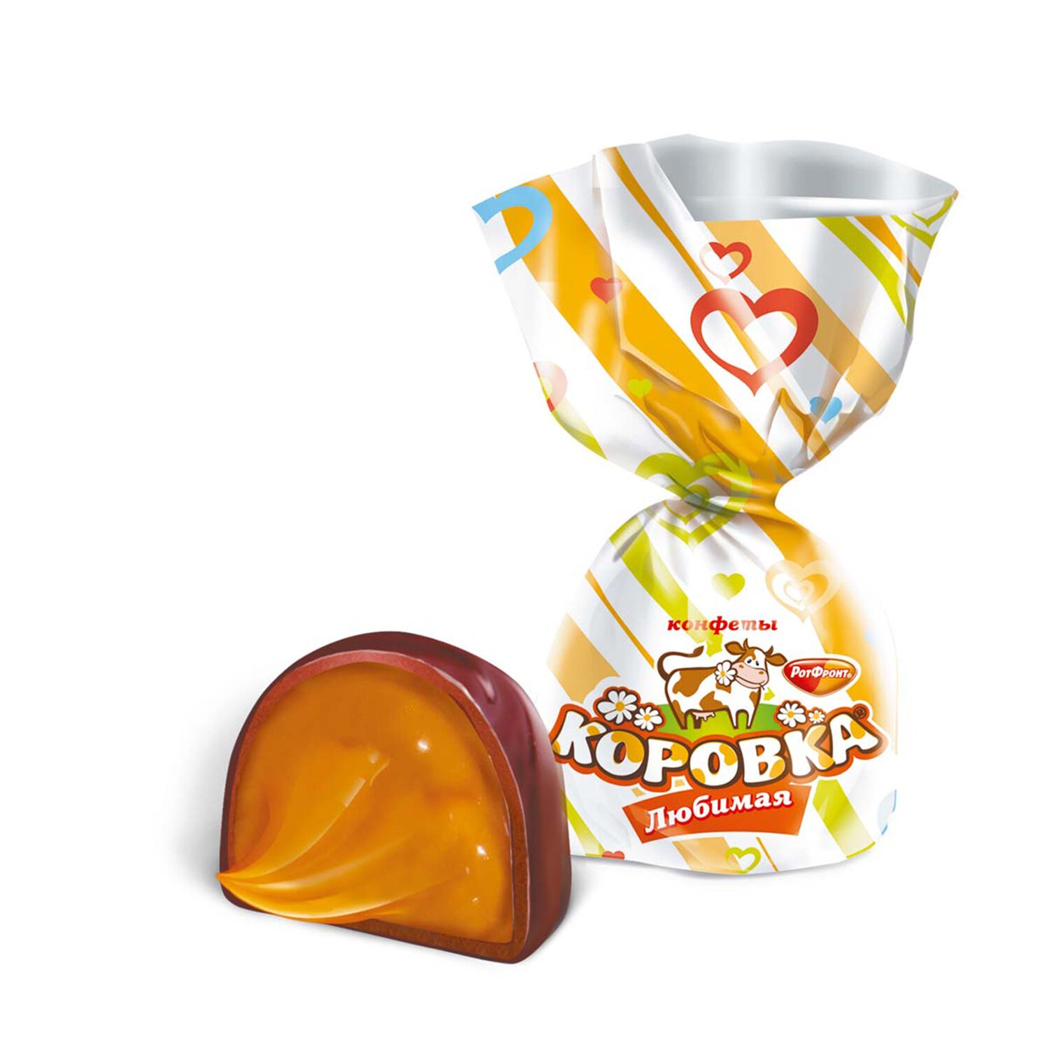 Конфеты шоколадные РОТ ФРОНТ "Коровка любимая" - это нежный сливочный крем в тонкой вафле, покрытой глазурью. Десерт поднимет настроение и утолит голод.
