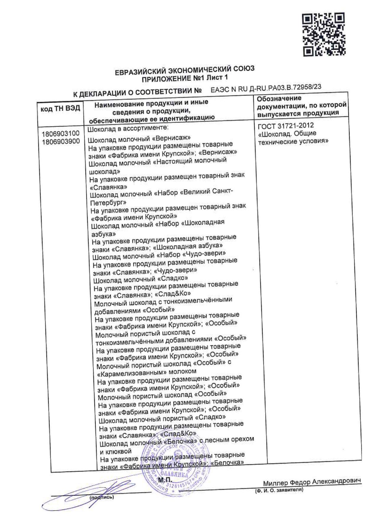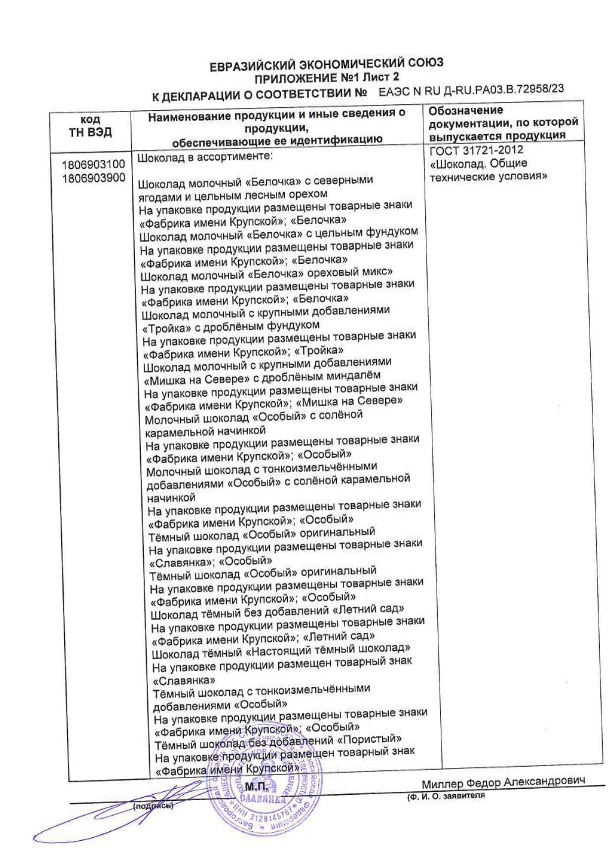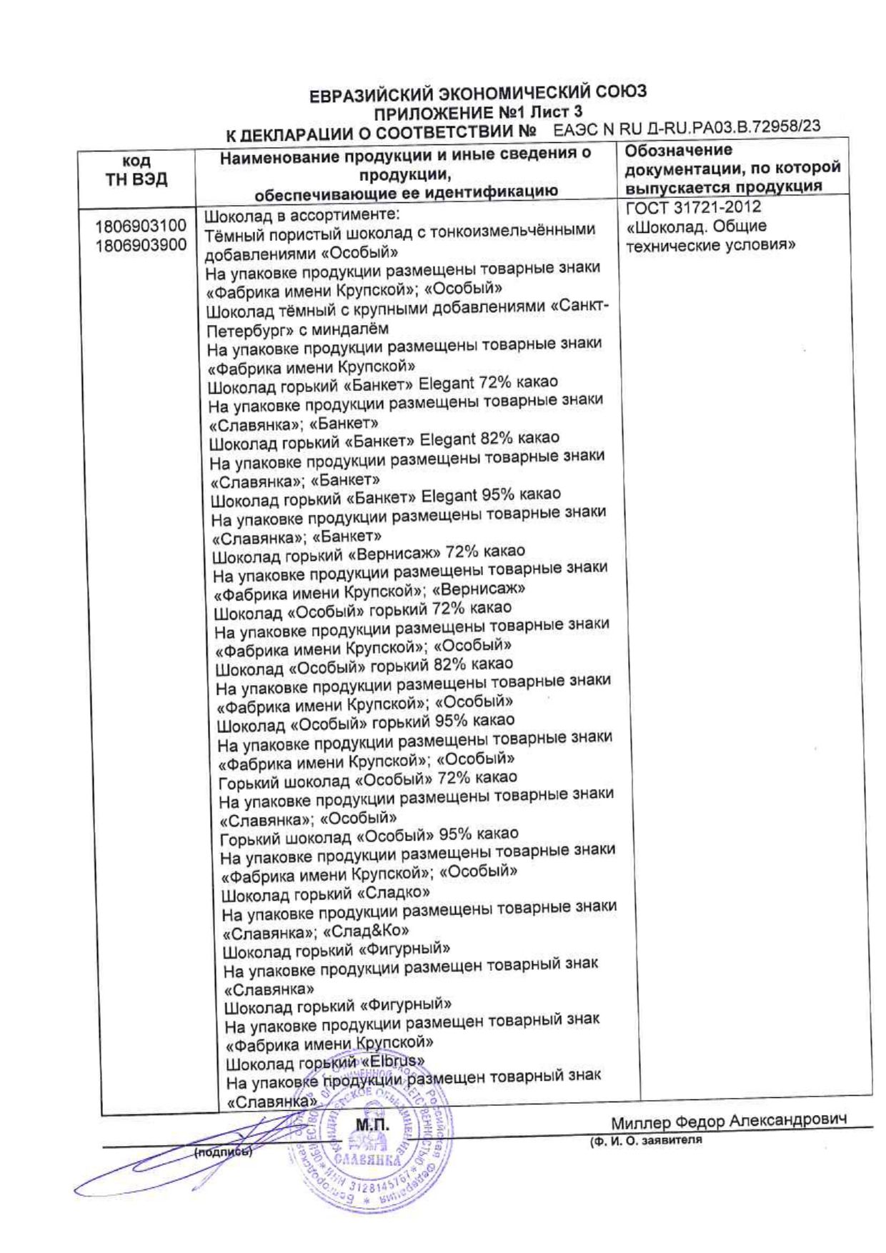 Состав: какао-тертое, сахар, молоко цельное сухое, масло какао, соль, эмульгаторы (лецитин соевый, эфиры полиглицерина и взаимоэтерифицированных рициноловых кислот), ароматизатор; продукт может содержать следы миндаля, фундука, арахиса, яичных продуктов и глютена.