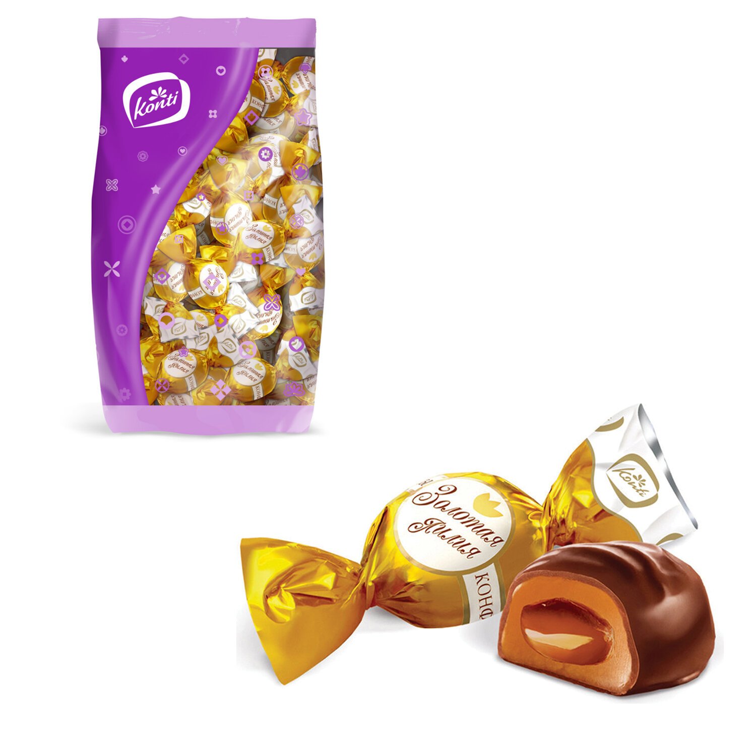 Конфеты шоколадные ЗОЛОТАЯ ЛИЛИЯ на основе тоффи, со сгущенным молоком, 1000 г, пакет, 16511