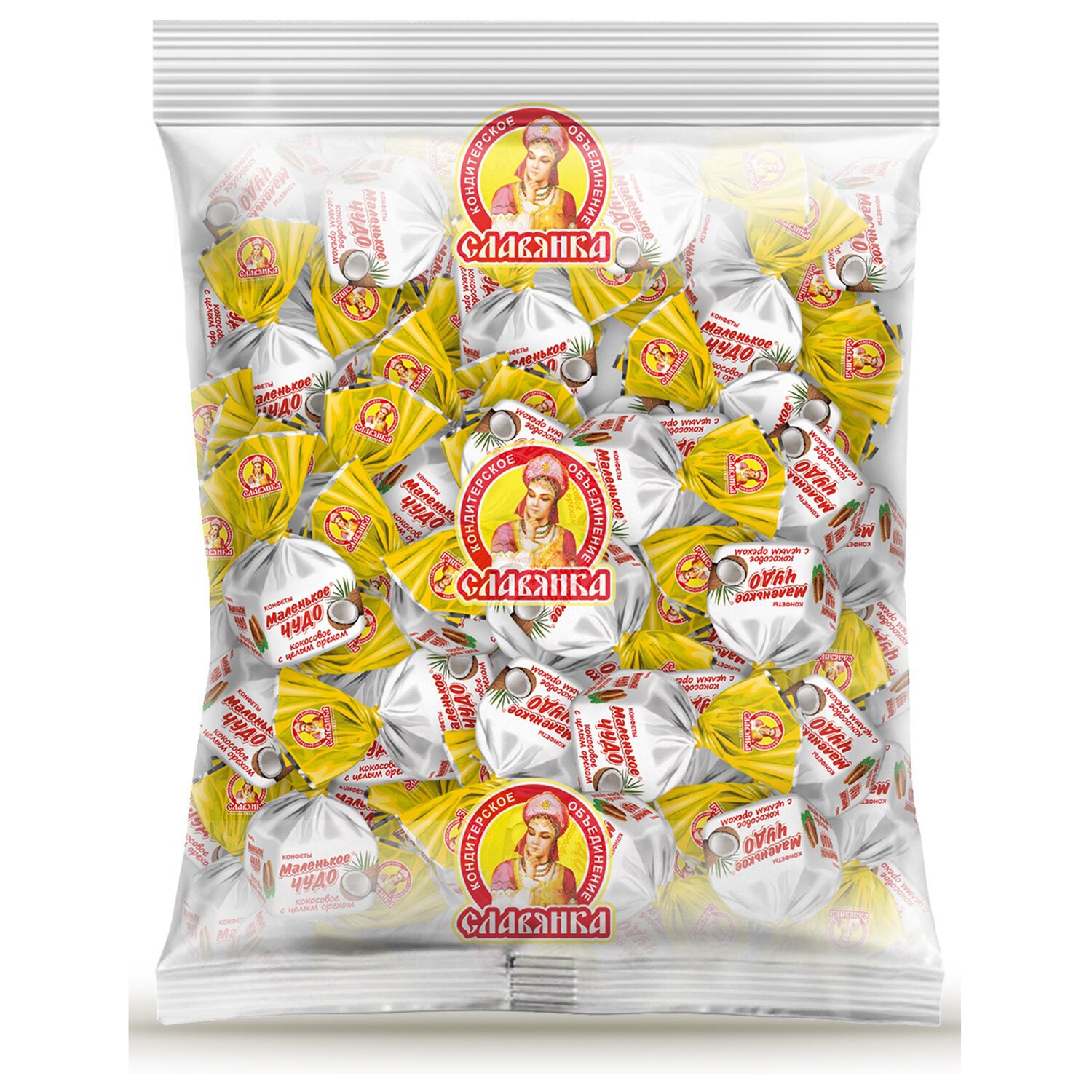 Конфеты СЛАВЯНКА "Маленькое чудо" с кокосовым вкусом и цельным орехом 1000 г, 12205