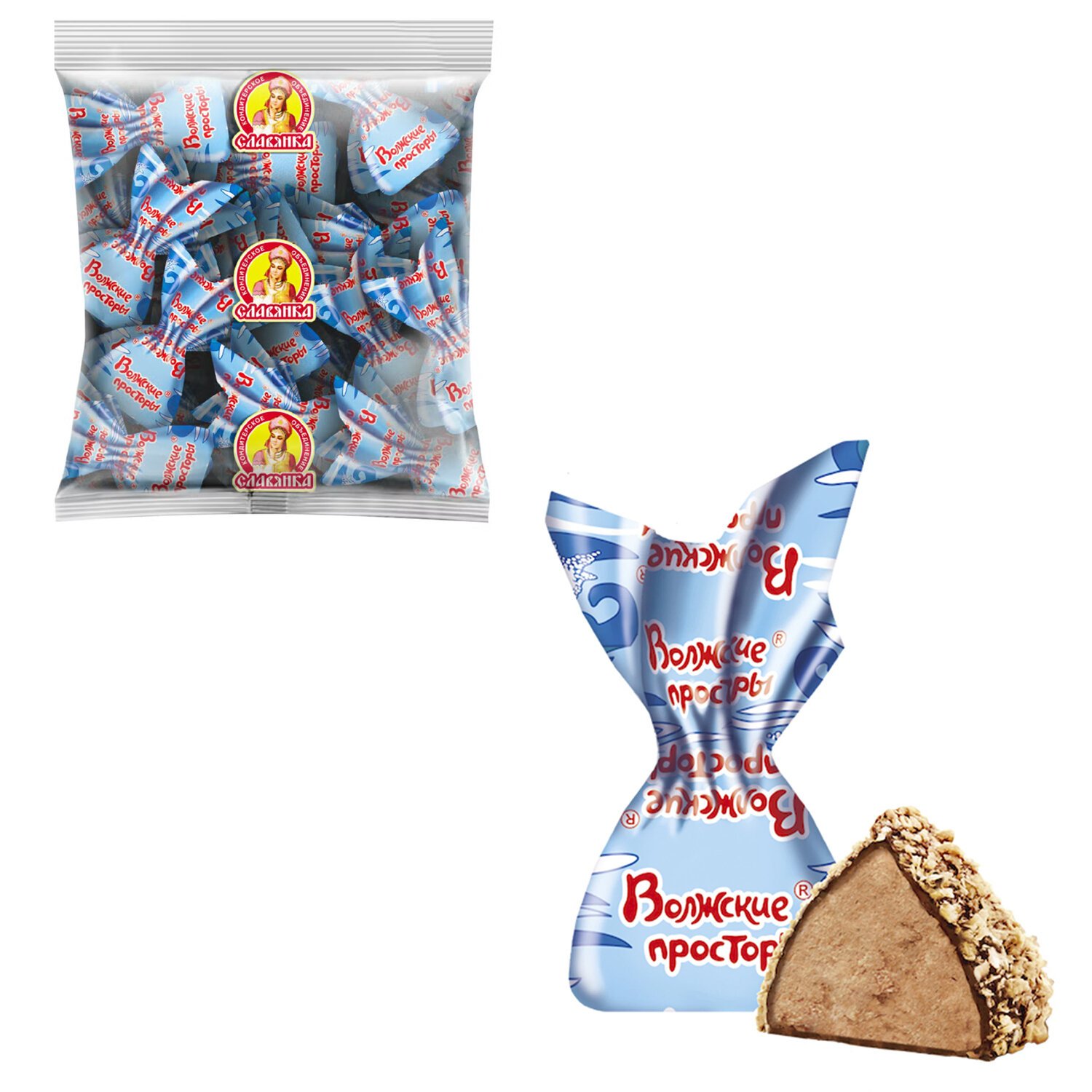 Конфеты СЛАВЯНКА "Волжские просторы" - это истинное наслаждение для гурманов. Нежная начинка из пралине покрыта хрустящей вафельной крошкой.