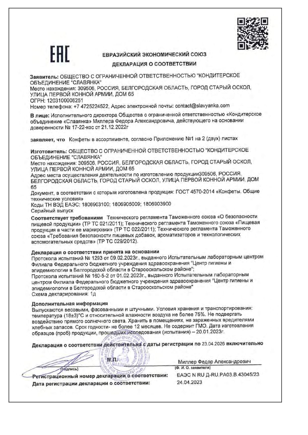 | Фирма-производитель | "Славянка КФ" |