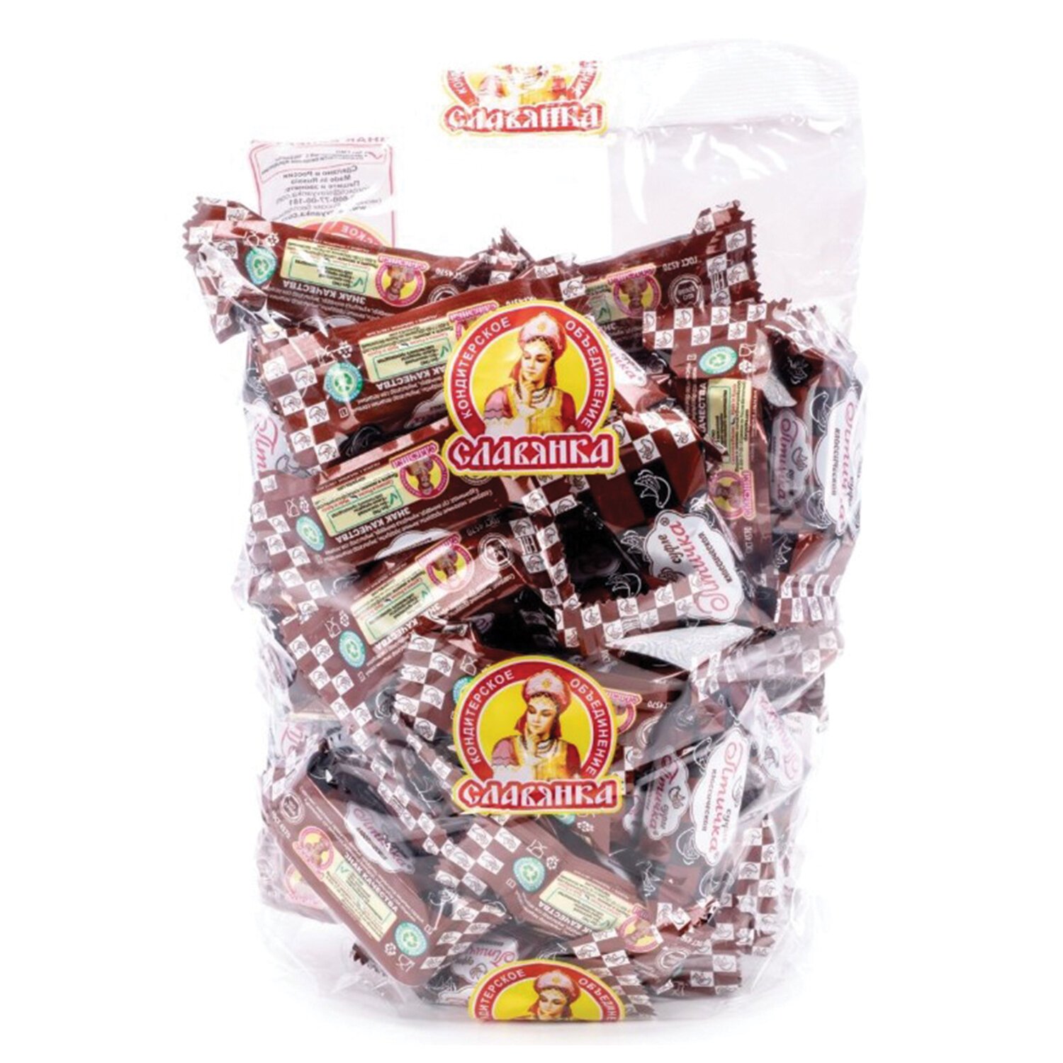 Конфеты-суфле СЛАВЯНКА "Птичка", классические, в шоколадной глазури, 1000 г, пакет, 70030