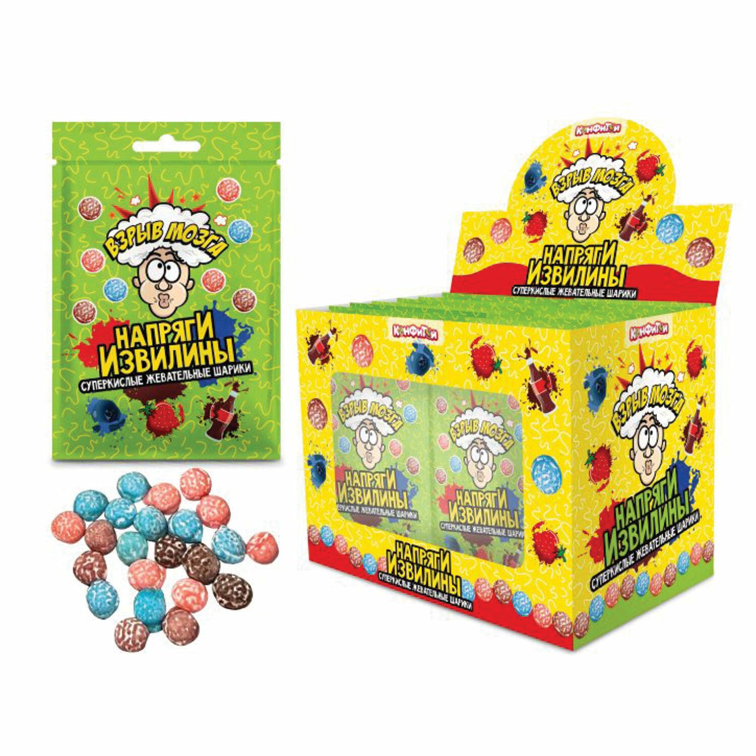 Конфеты ВЗРЫВ МОЗГА супер кислые "Напряги извилины", жевательные шарики, 12 г, КОНФИТОЙ, КТ94995