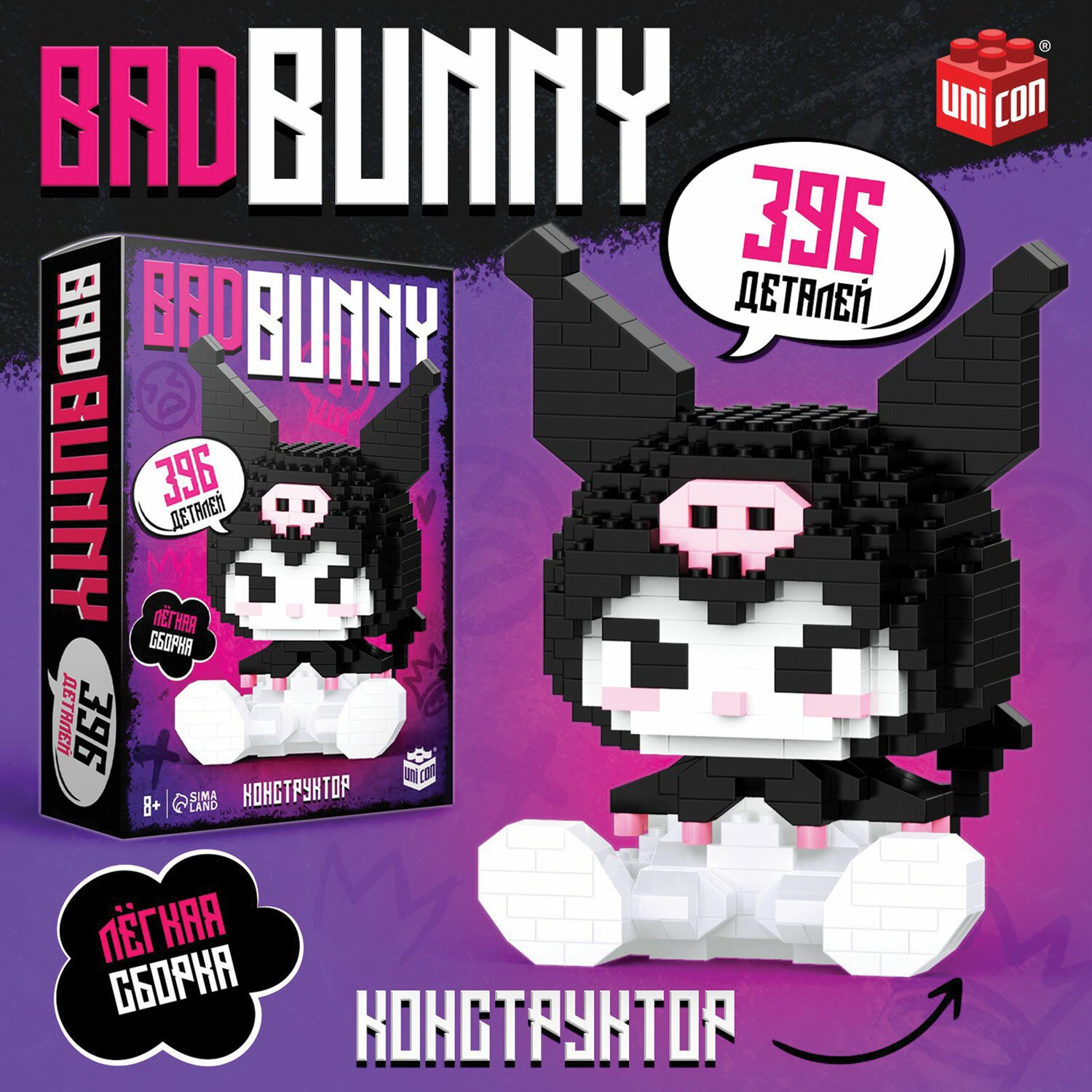 Конструктор "BadBunny" – это увлекательная игрушка для поклонников аниме и юных строителей. Несмотря на вредный характер кролика, детали просто собираются по инструкции.