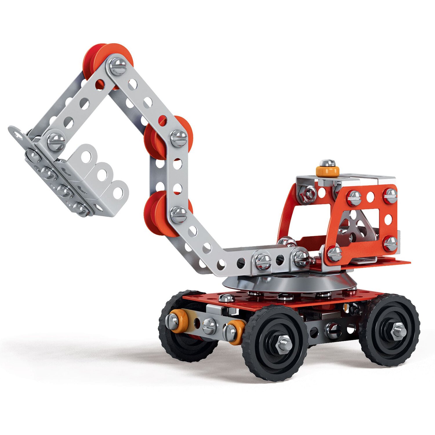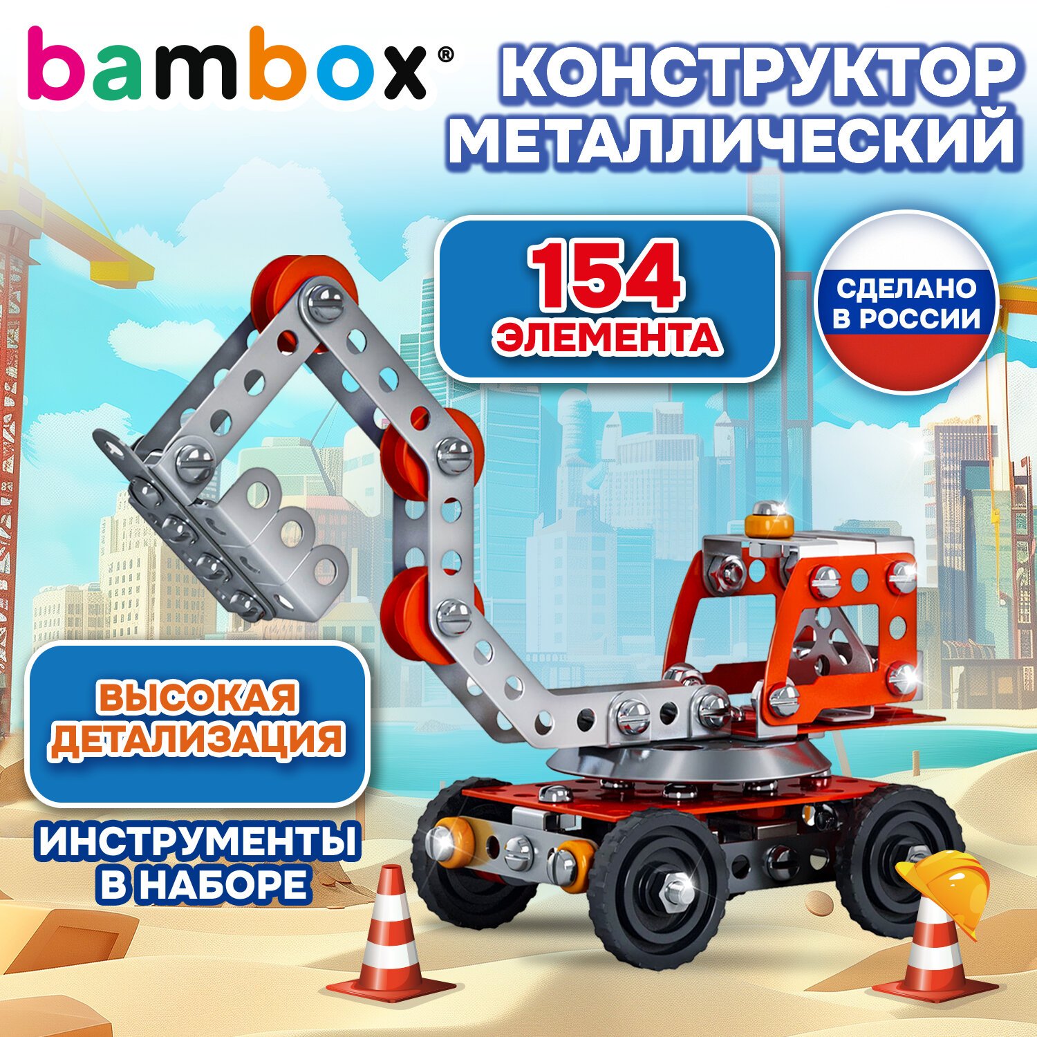 Каждый элемент металлического конструктора BAMBOX "Экскаватор" продуман до мелочей. Круглые отверстия упрощают соединение деталей, а набор инструментов позволяет надежно закрепить их винтами и гайками.