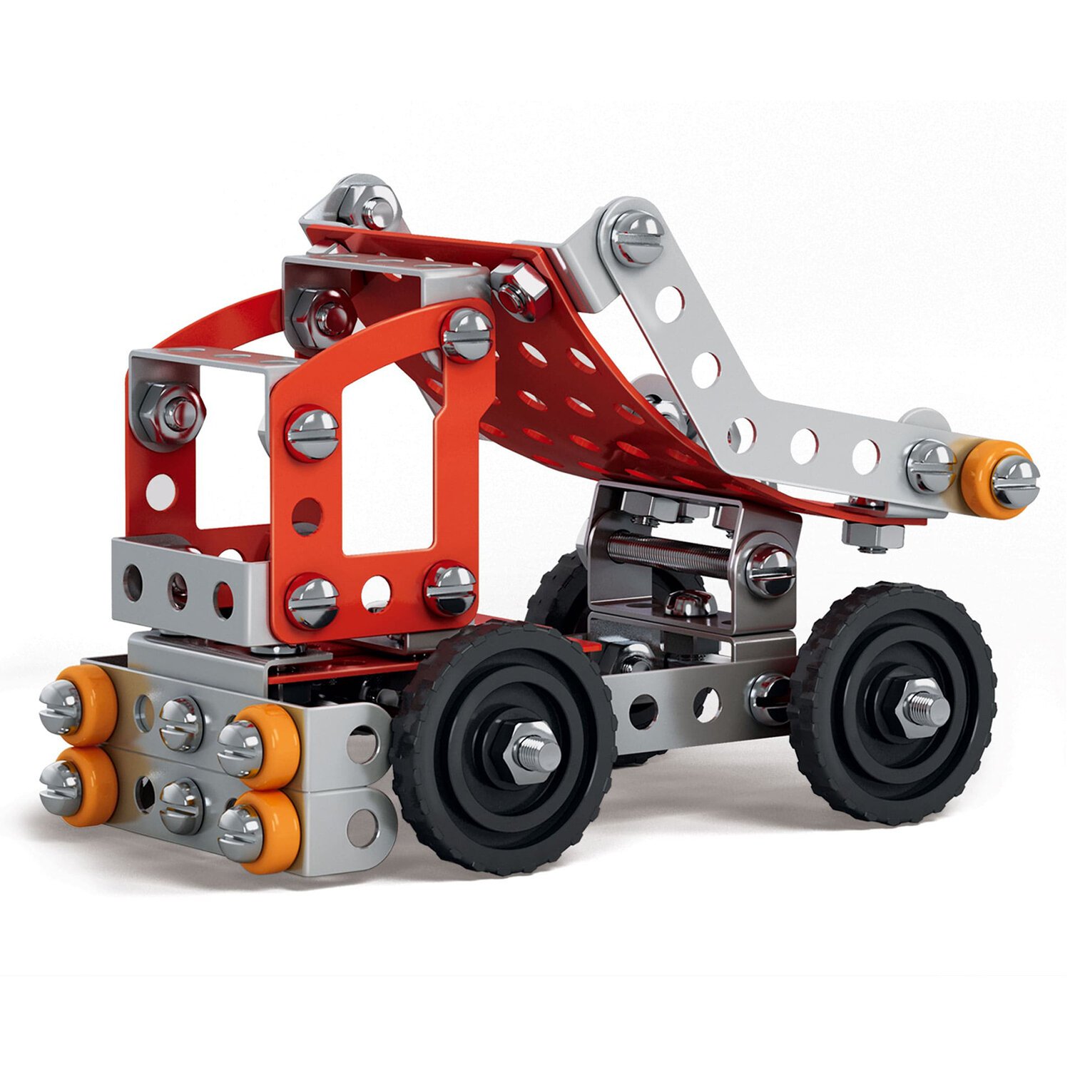 Каждый элемент металлического конструктора BAMBOX "Самосвал" продуман до мелочей. Круглые отверстия упрощают соединение деталей, а набор инструментов позволяет надежно закрепить их винтами и гайками.