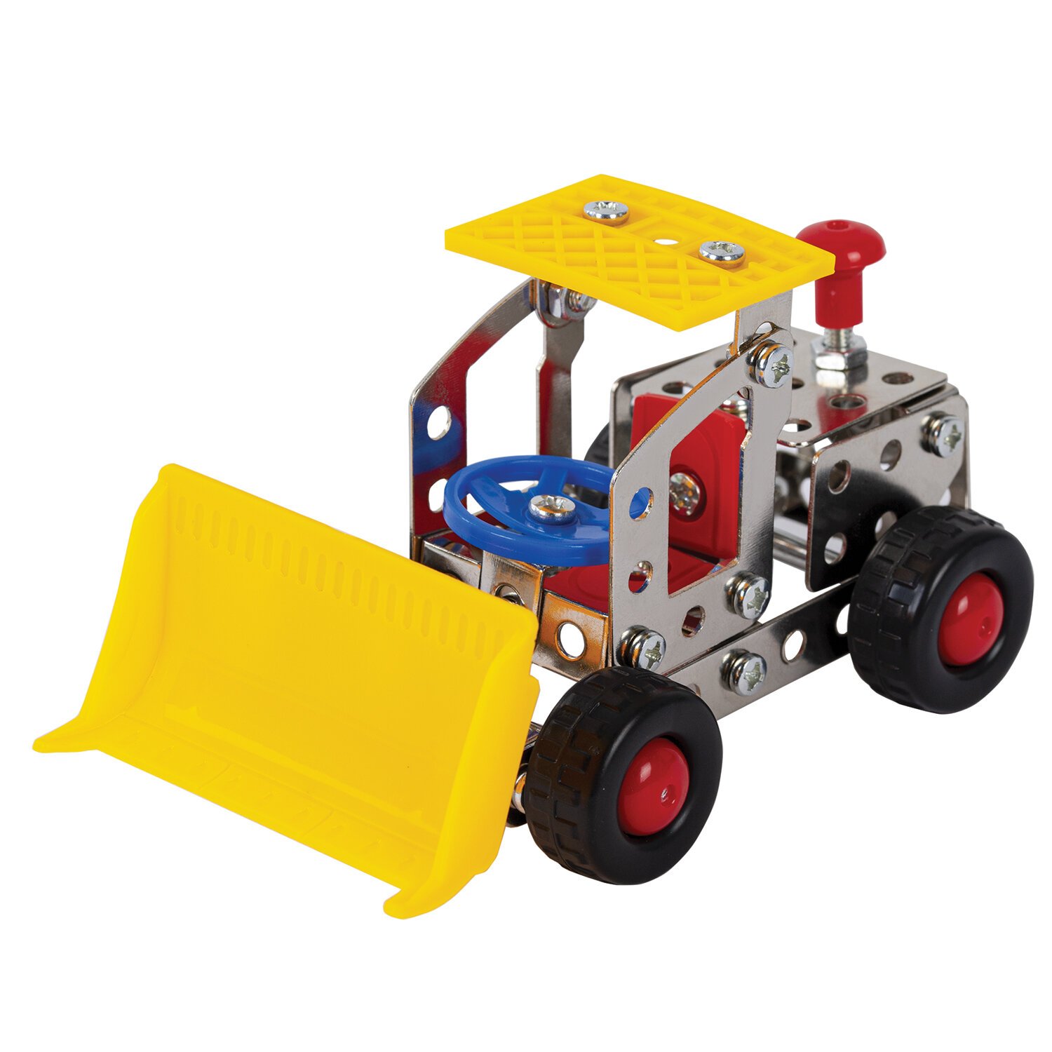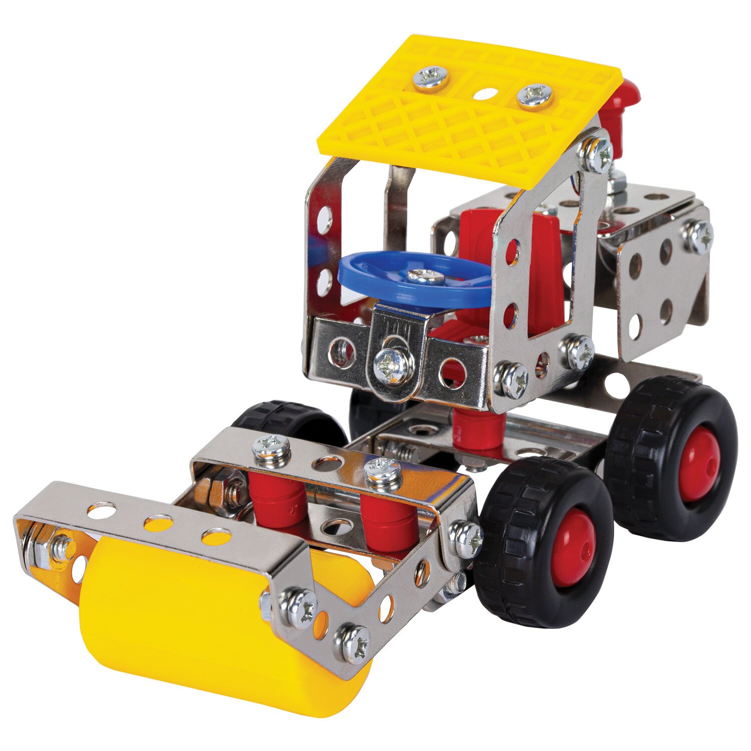 Каждый элемент металлического конструктора BAMBOX "Строительная техника 5в1" продуман до мелочей. Круглые отверстия упрощают соединение деталей, а набор инструментов позволяет надежно закрепить их винтами и гайками.