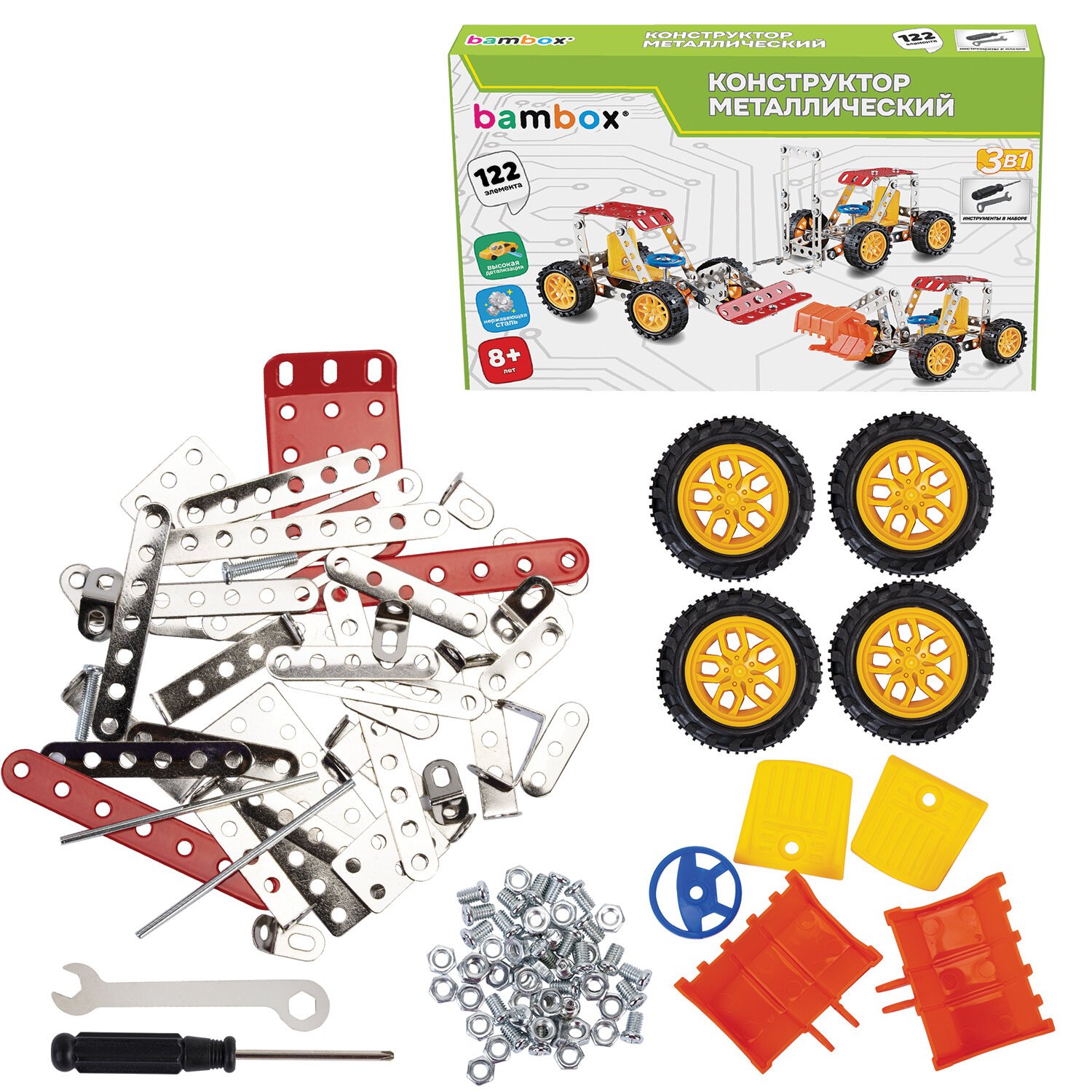 Металлический конструктор BAMBOX "Техника 3в1" –– развивающая игрушка для детей старше 8 лет. Конструктор идеально подходит для занятий на уроках труда и комплексного развития ребёнка.