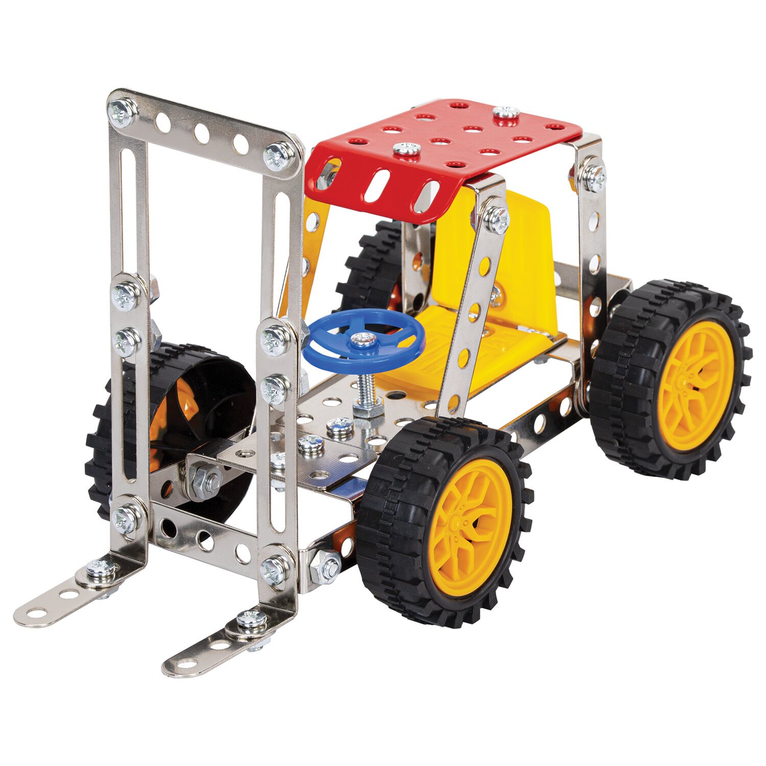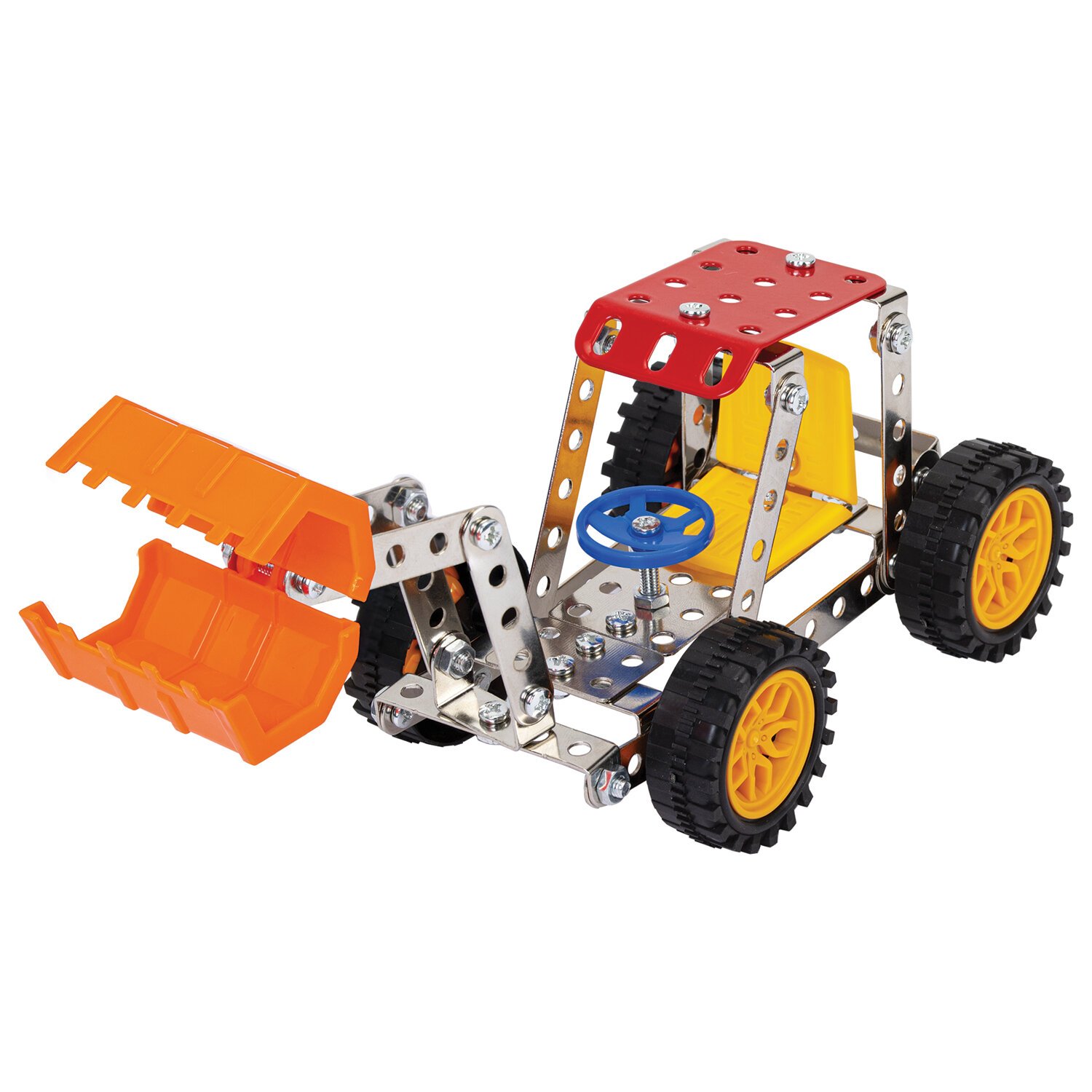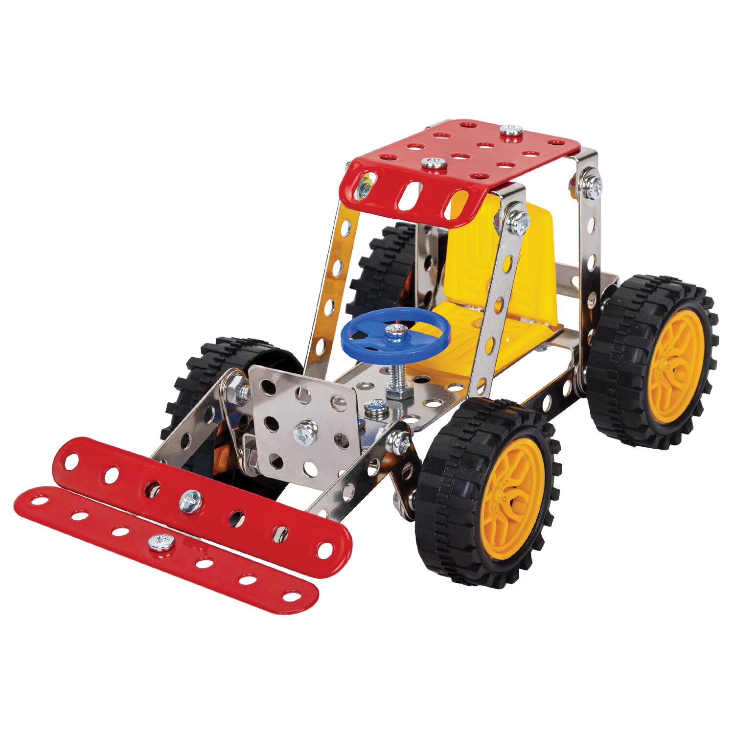 Каждый элемент металлического конструктора BAMBOX "Техника 3в1" продуман до мелочей. Круглые отверстия упрощают соединение деталей, а набор инструментов позволяет надежно закрепить их винтами и гайками.