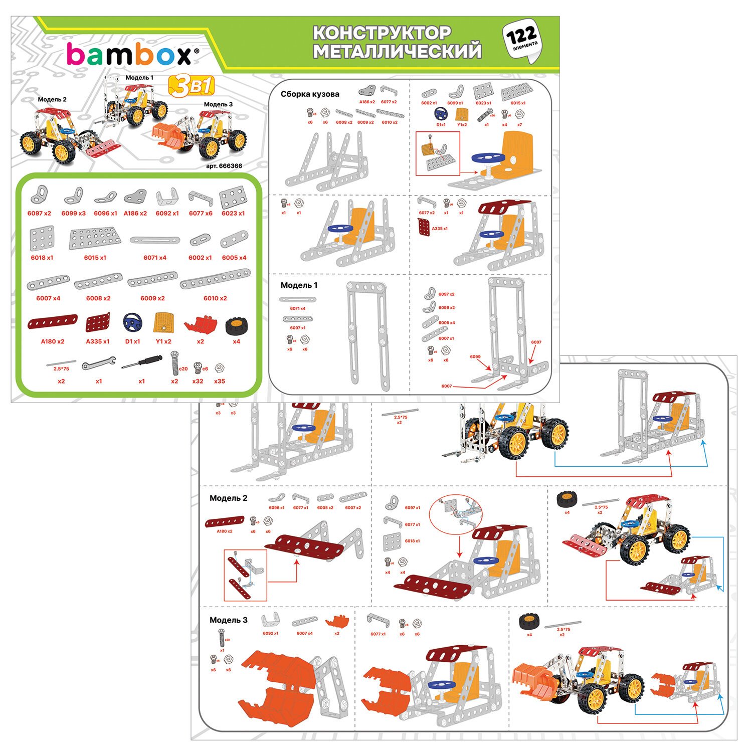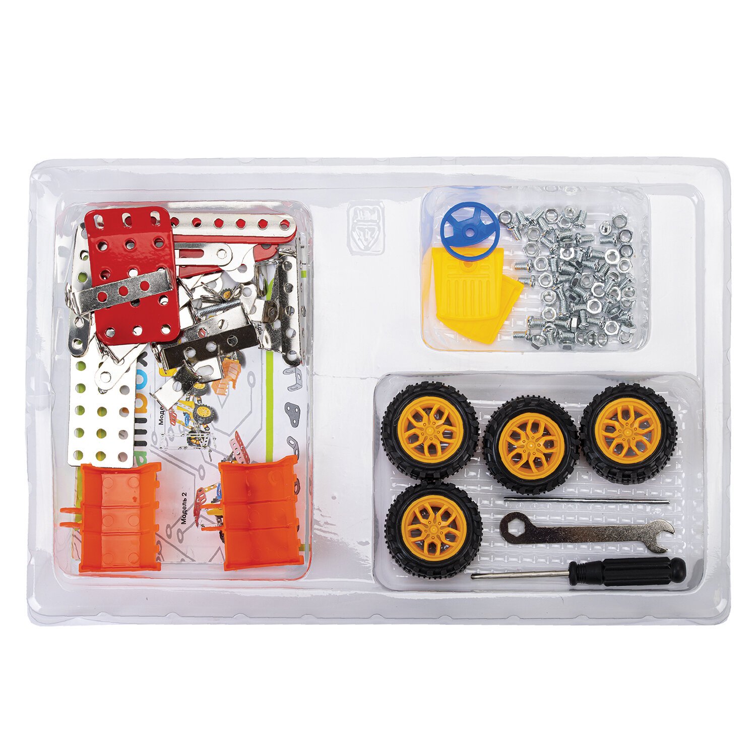 Комплектация набора:122 детали, гаечный ключ, отвертка, пошаговая инструкция по сборке.