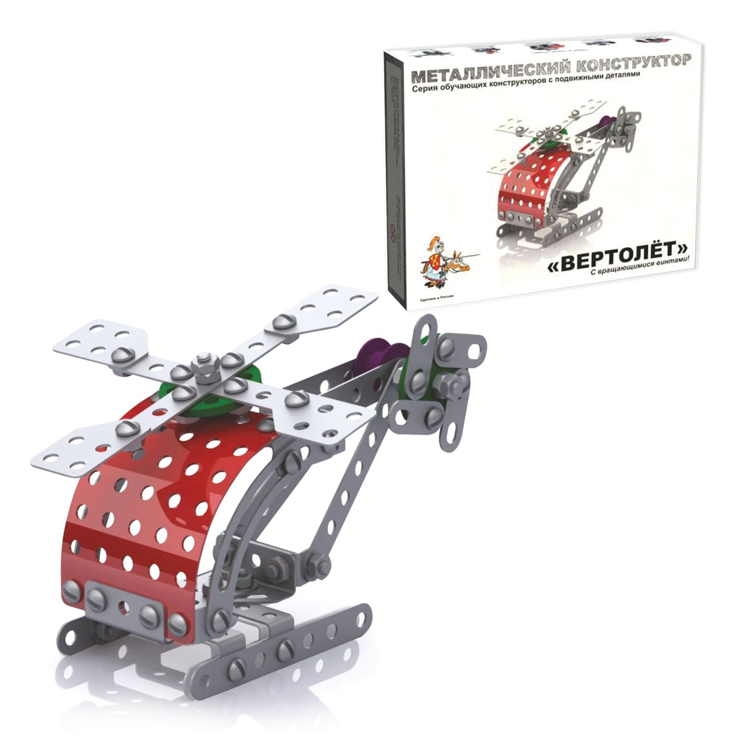 Металлический конструктор с подвижными деталями "Вертолет" – та модель, которая понравится ребенку. При кажущейся простоте этот вертолет из железных деталей не так уж легок в сборке. Подходит для детских учебных заведений.
