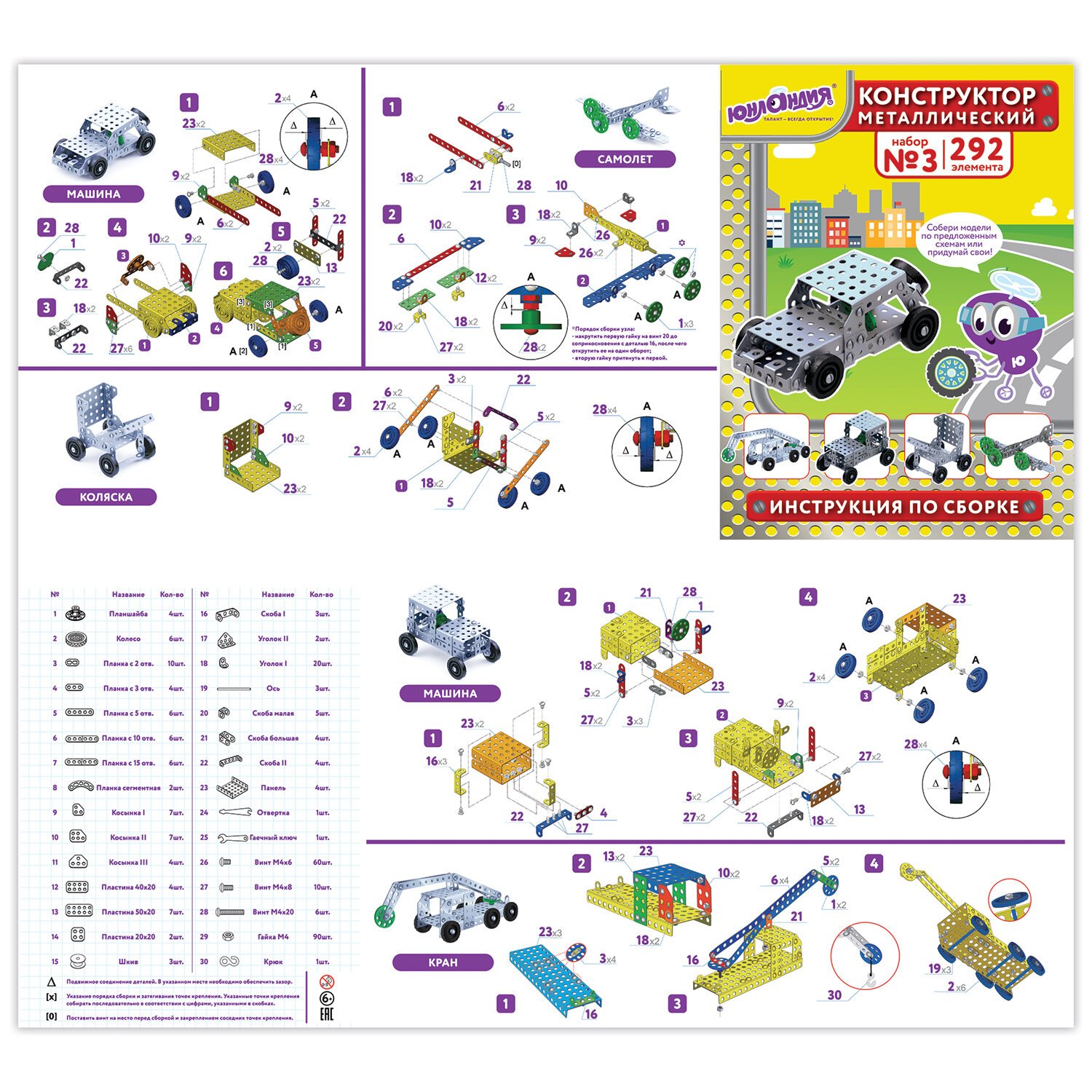 Металлический конструктор ЮНЛАНДИЯ позволяет ребенку в игре развивать логическое и абстрактное мышление, мелкую моторику рук, внимательность и фантазию. Прекрасно подходит для уроков труда в школе.