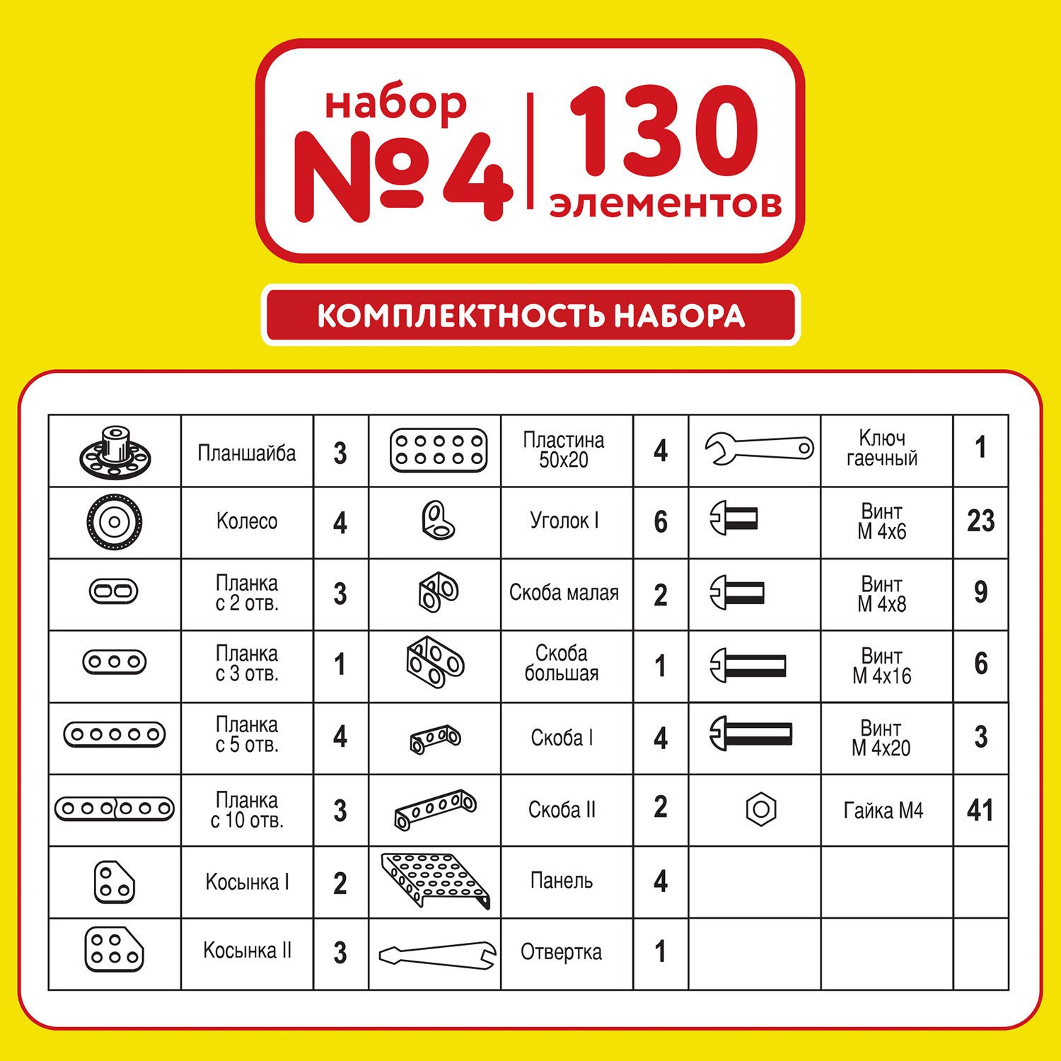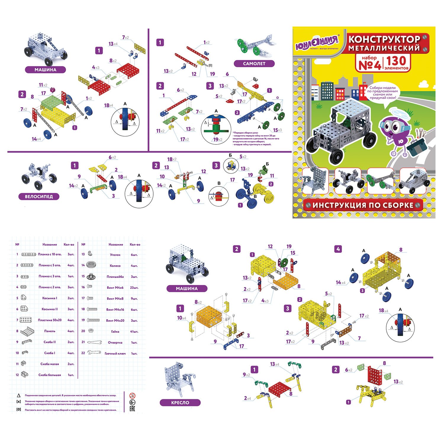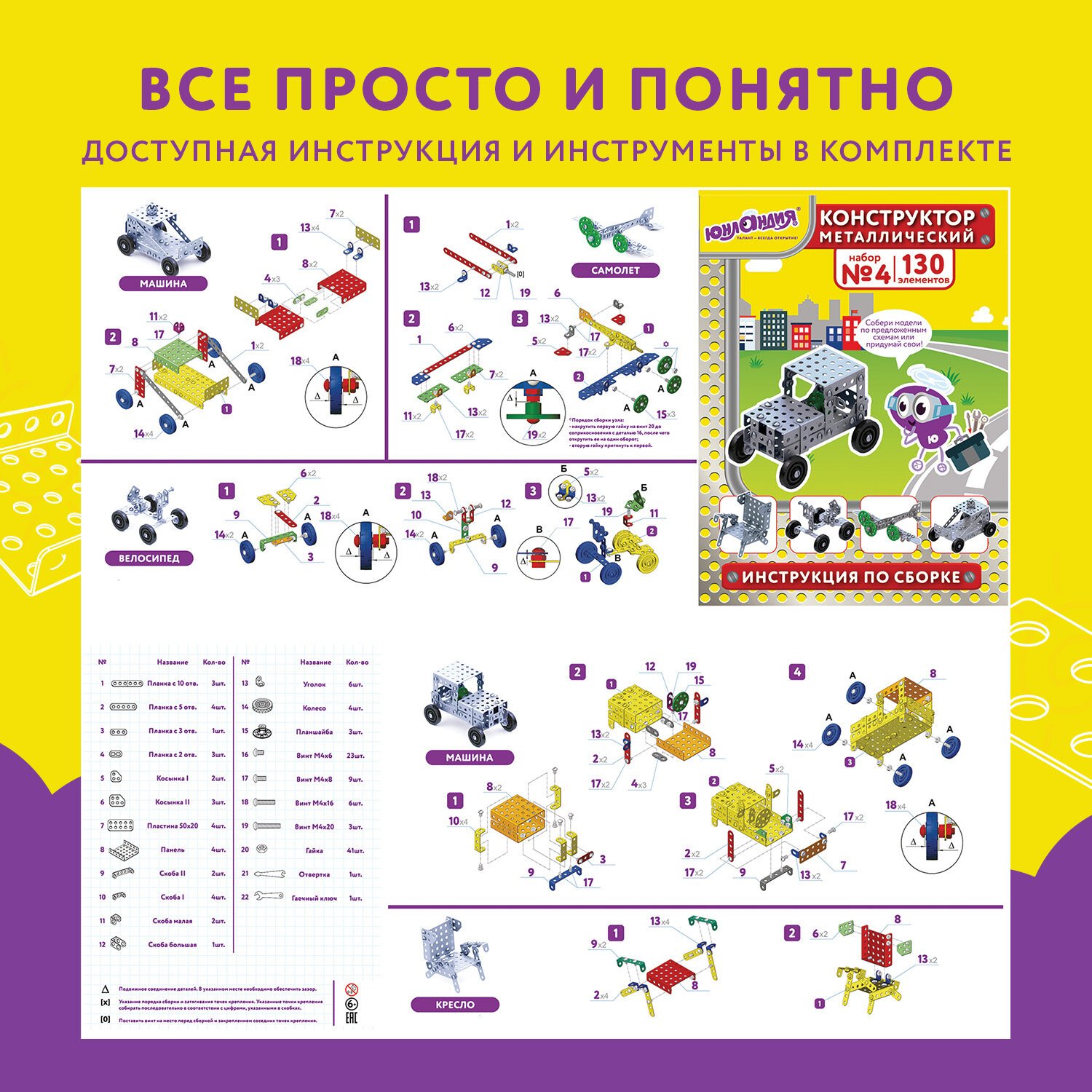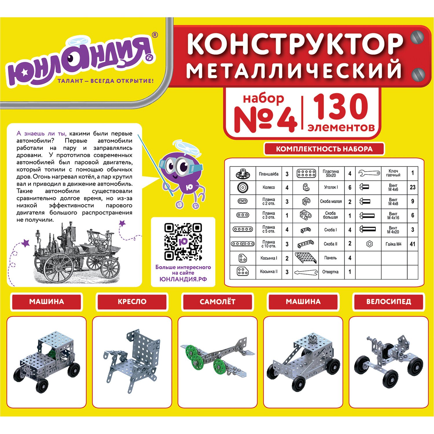 Конструктор металлический ЮНЛАНДИЯ "Для уроков труда №4", развивающий, 130 элементов, 104682