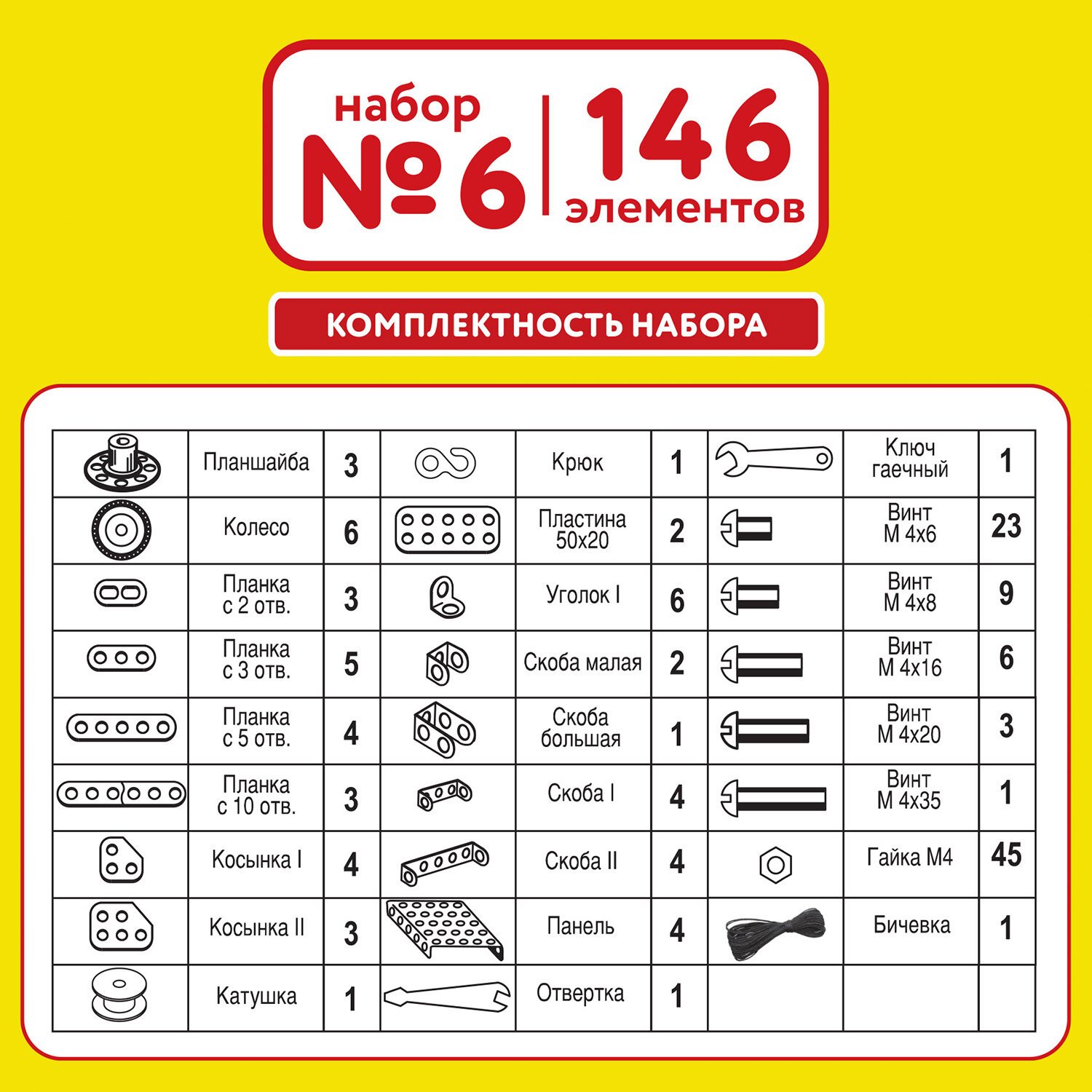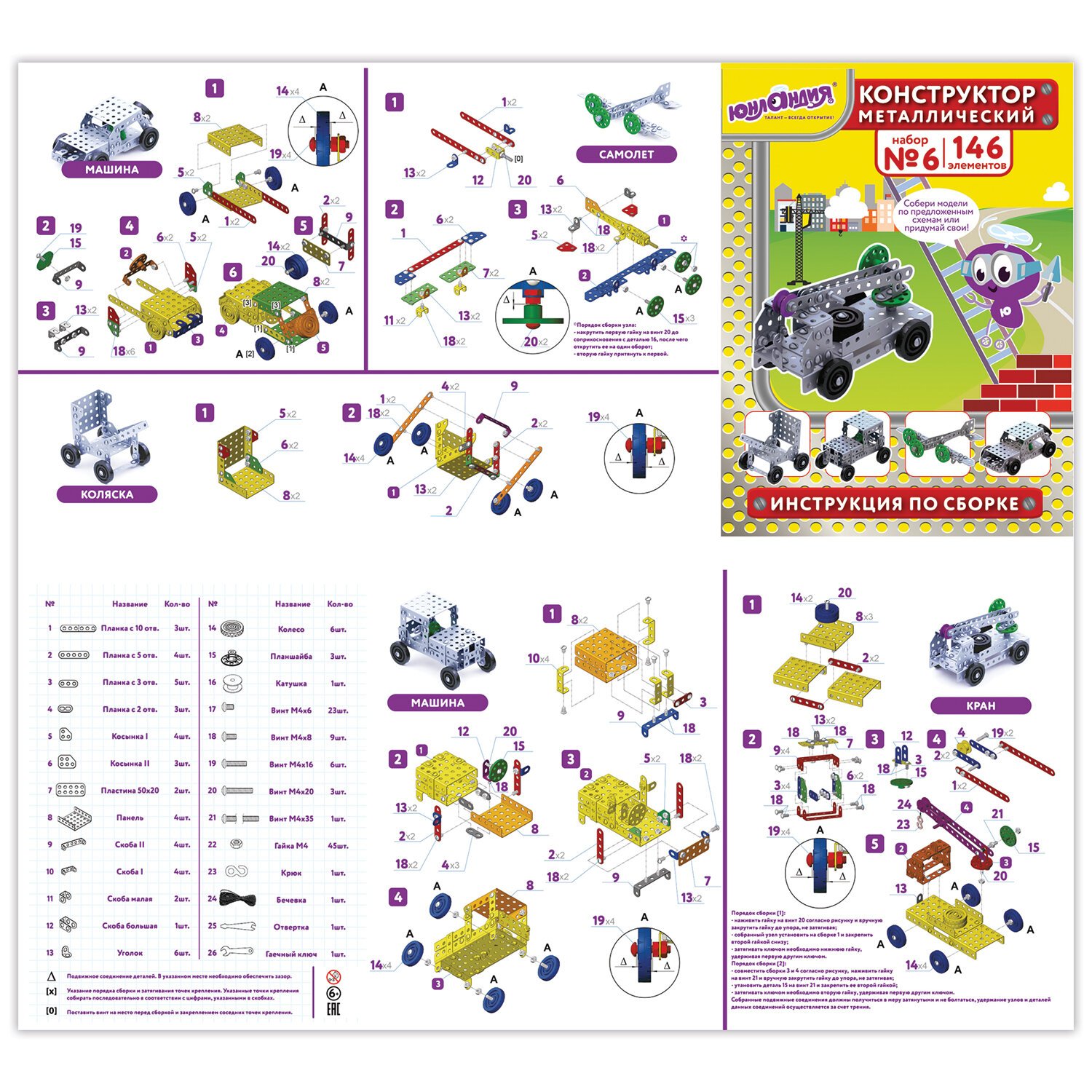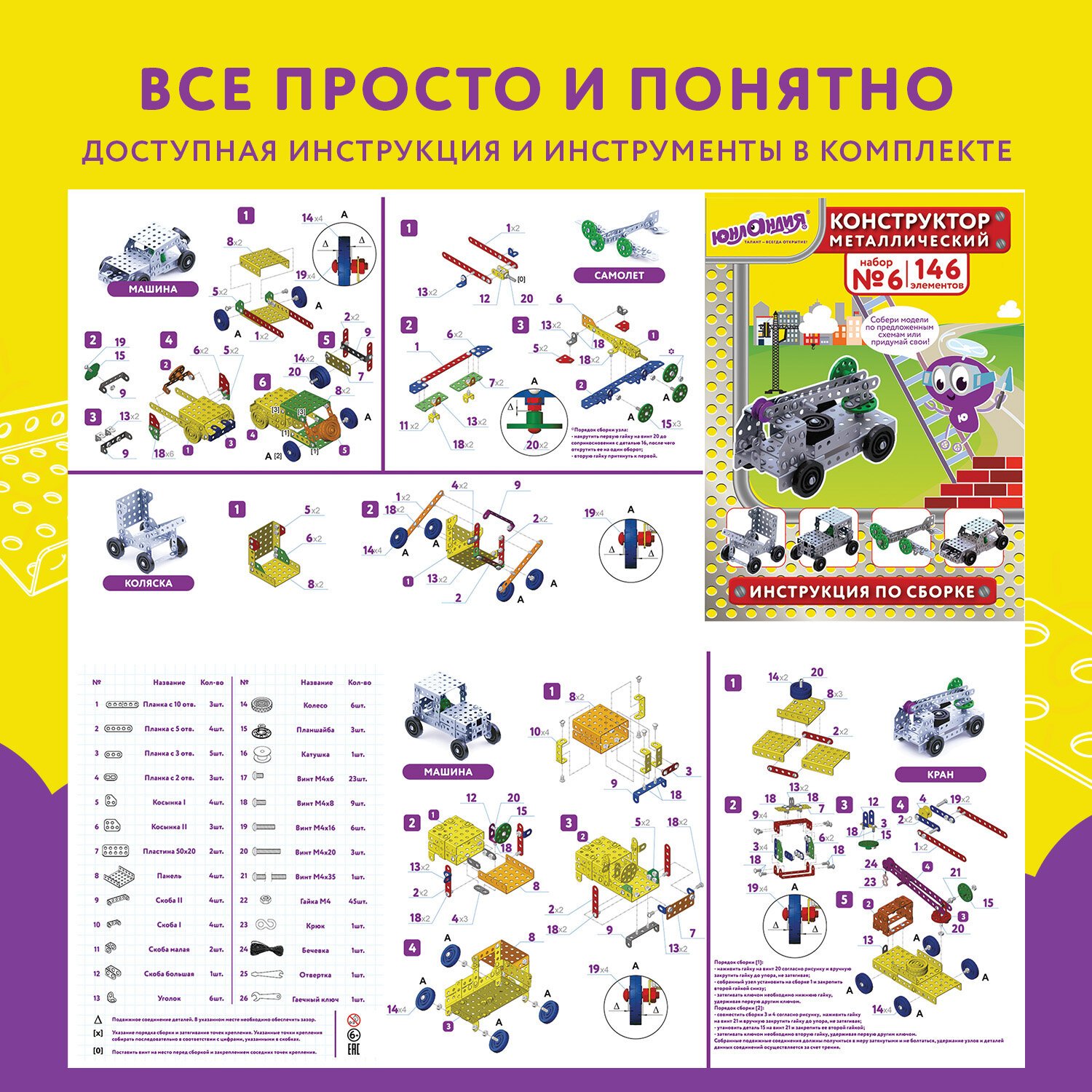 Конструктор металлический ЮНЛАНДИЯ "Для уроков труда №6", развивающий, 146 элементов, 104684