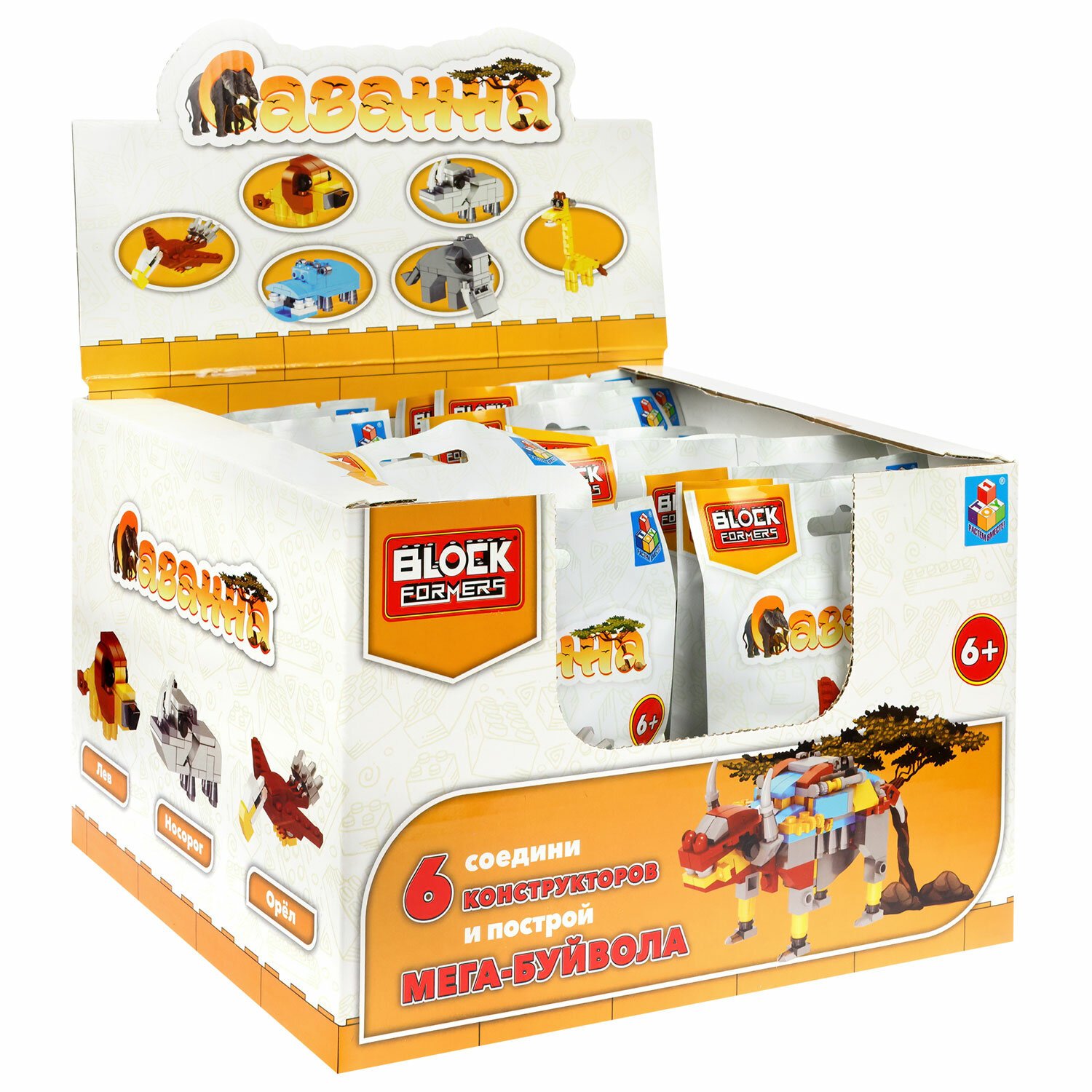 Конструктор пластиковый Blockformers "Саванна", 6 видов, шоубокс 24 шт., 1TOY, Т23210