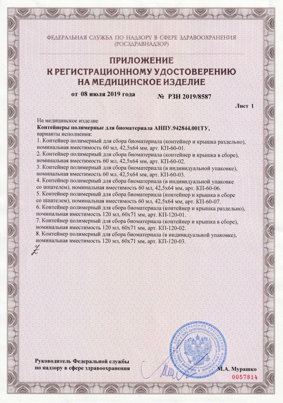 Контейнер для сбора биоматериалов 120 мл нестерильный, индивидуальная упаковка, КП –120-03-200