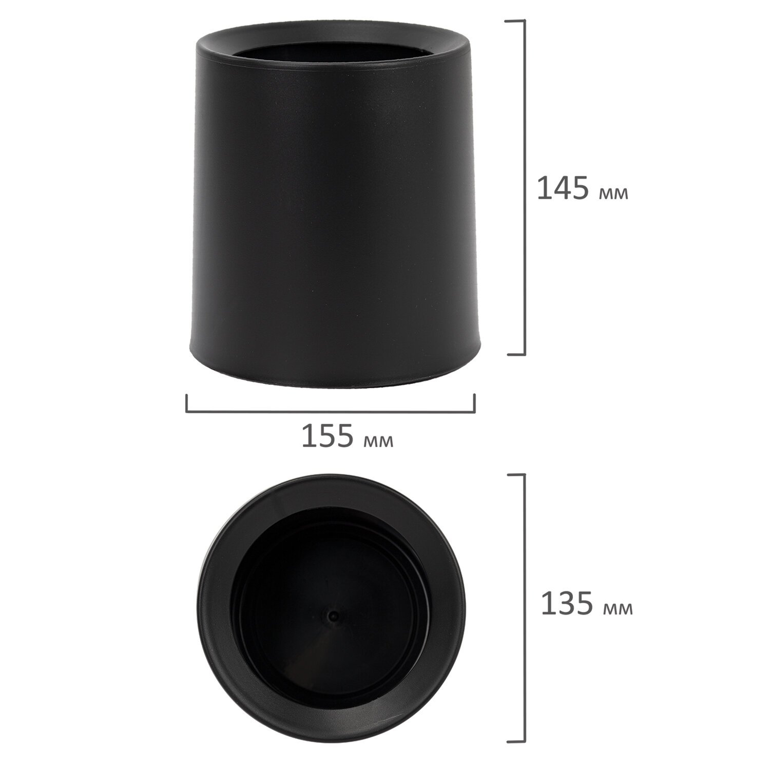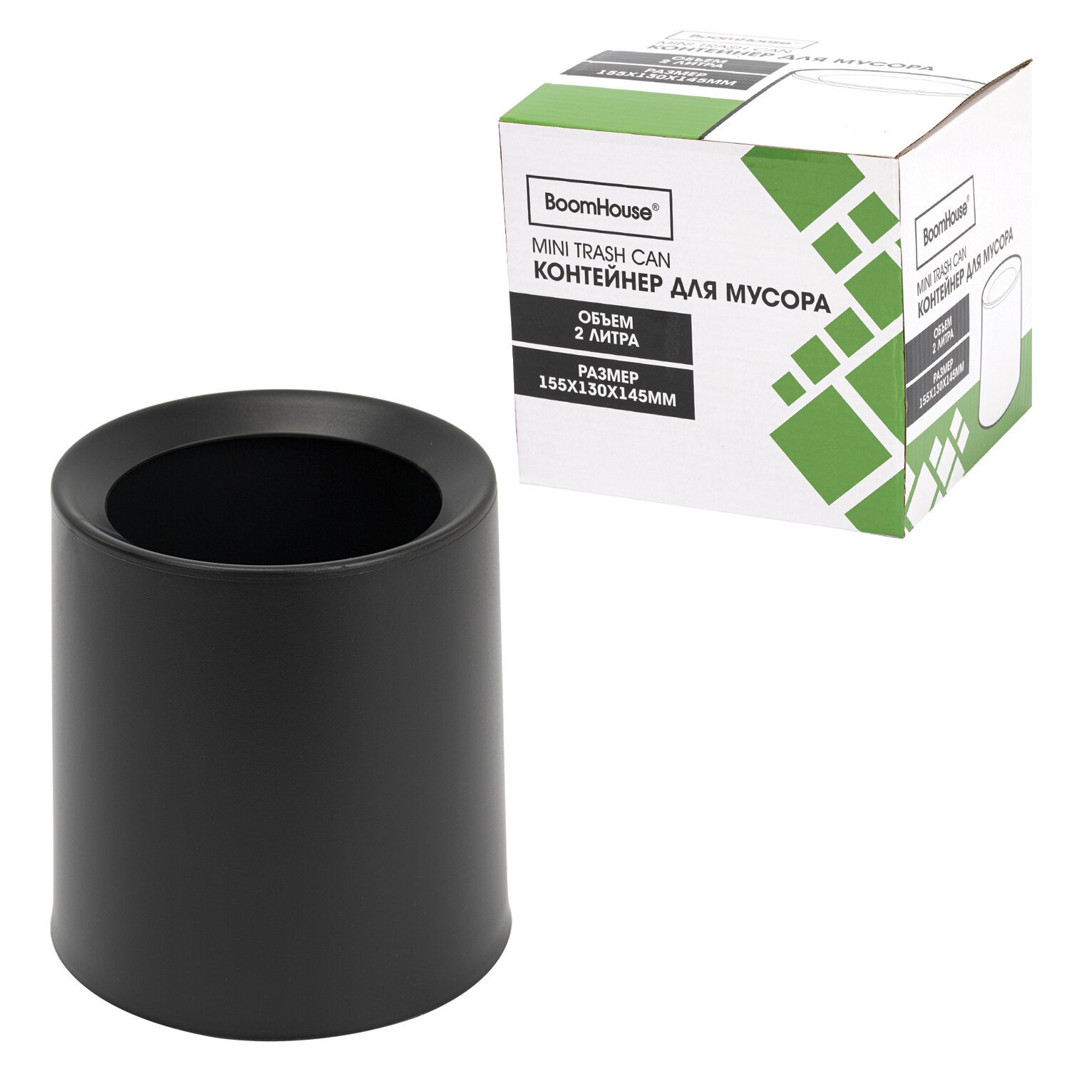 Контейнер урна ведерко для мусора НАСТОЛЬНОЕ без крышки 2л, 155х130х145мм, черный, BoomHouse, 238901