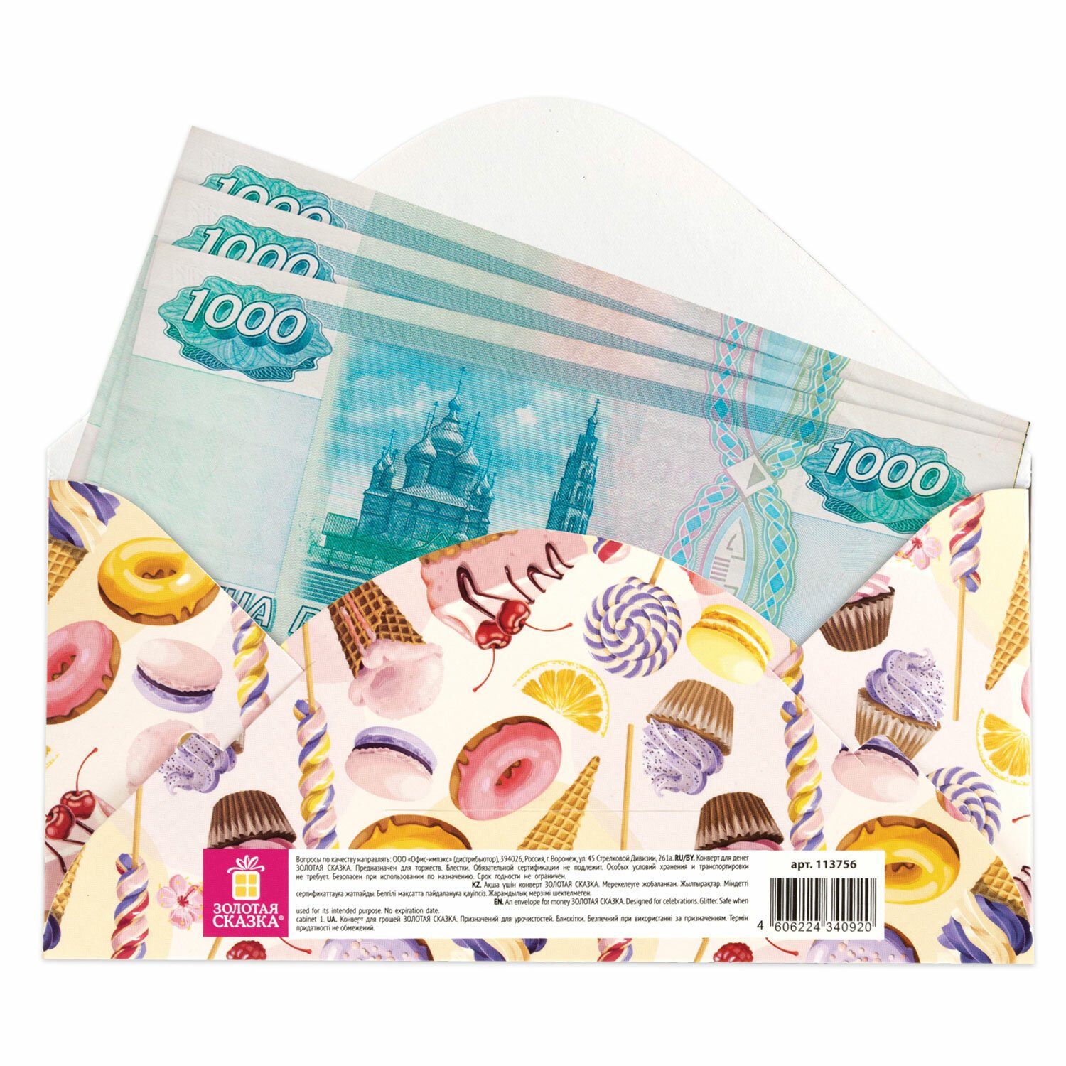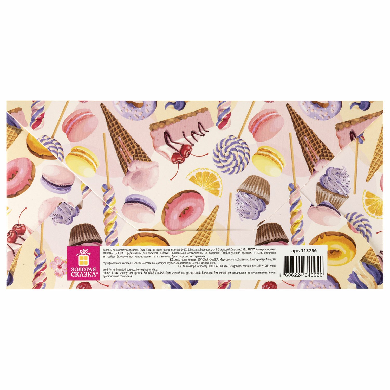Конверт для денег "НА СЛАДКУЮ ЖИЗНЬ!", Десерт, 166х82 мм, блестки, ЗОЛОТАЯ СКАЗКА, 113756