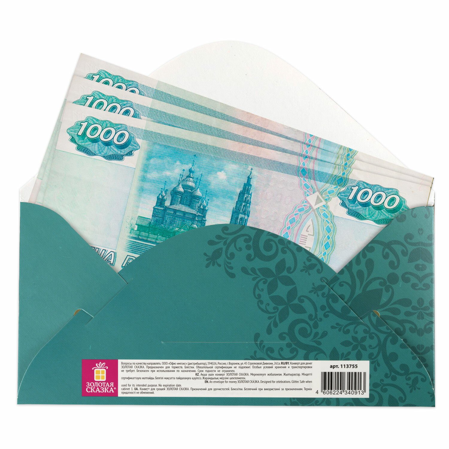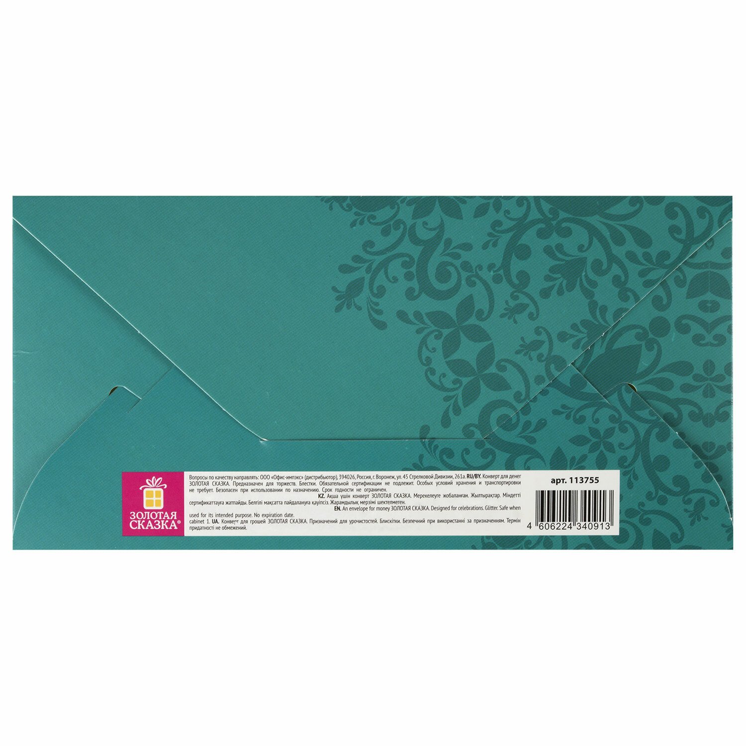 Конверт для денег ЗОЛОТАЯ СКАЗКА предназначен для вручения денежного подарка на торжественных мероприятиях по случаю бракосочетания.