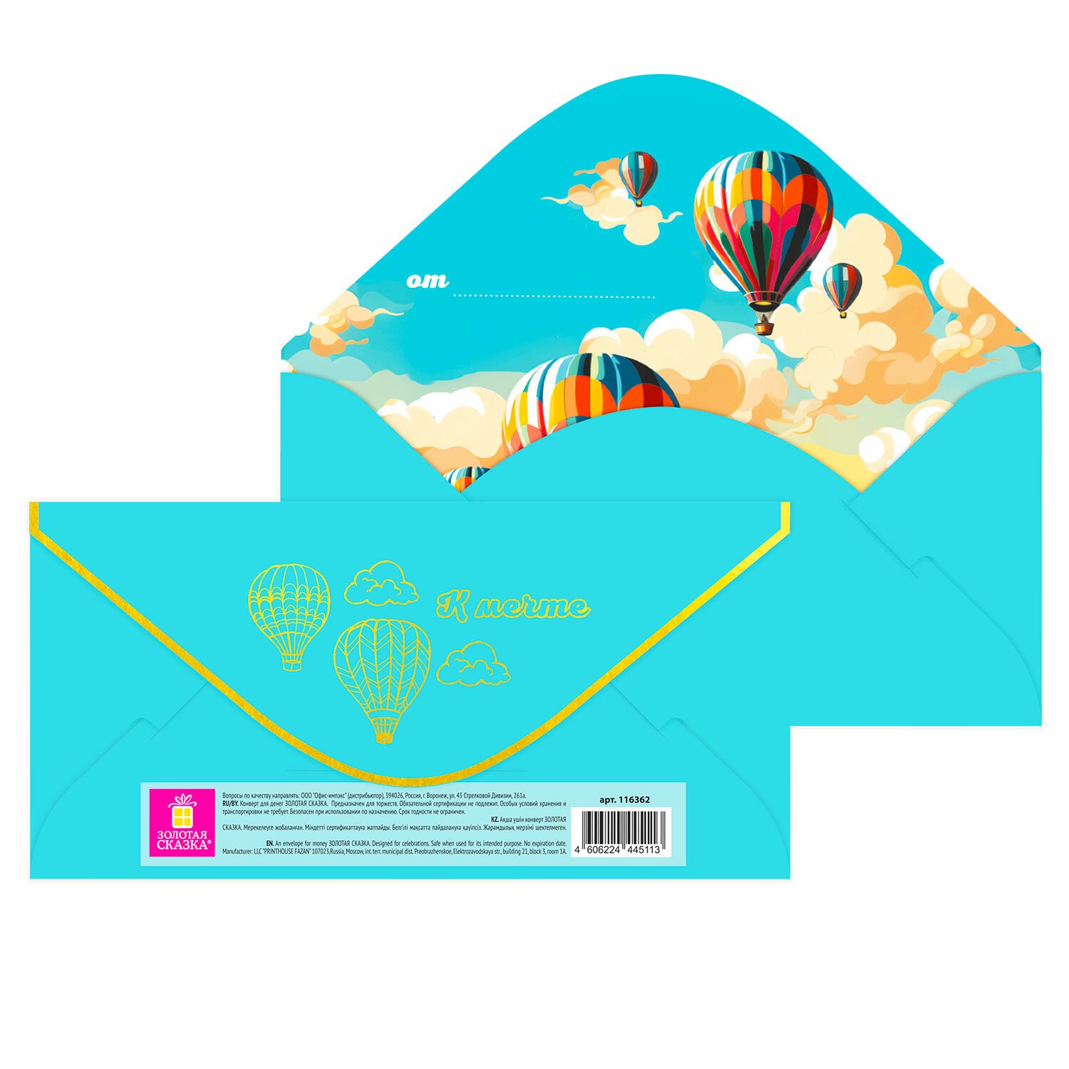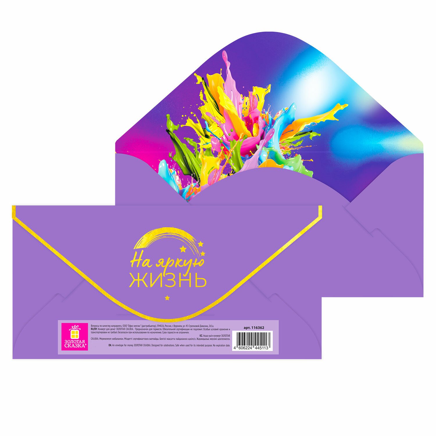 Конверт для денег ЗОЛОТАЯ СКАЗКА предназначен для вручения денежного подарка на торжественных мероприятиях и праздниках.