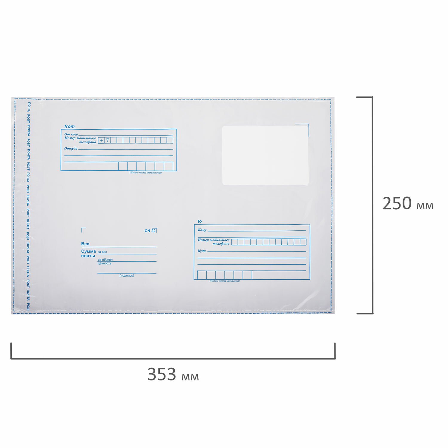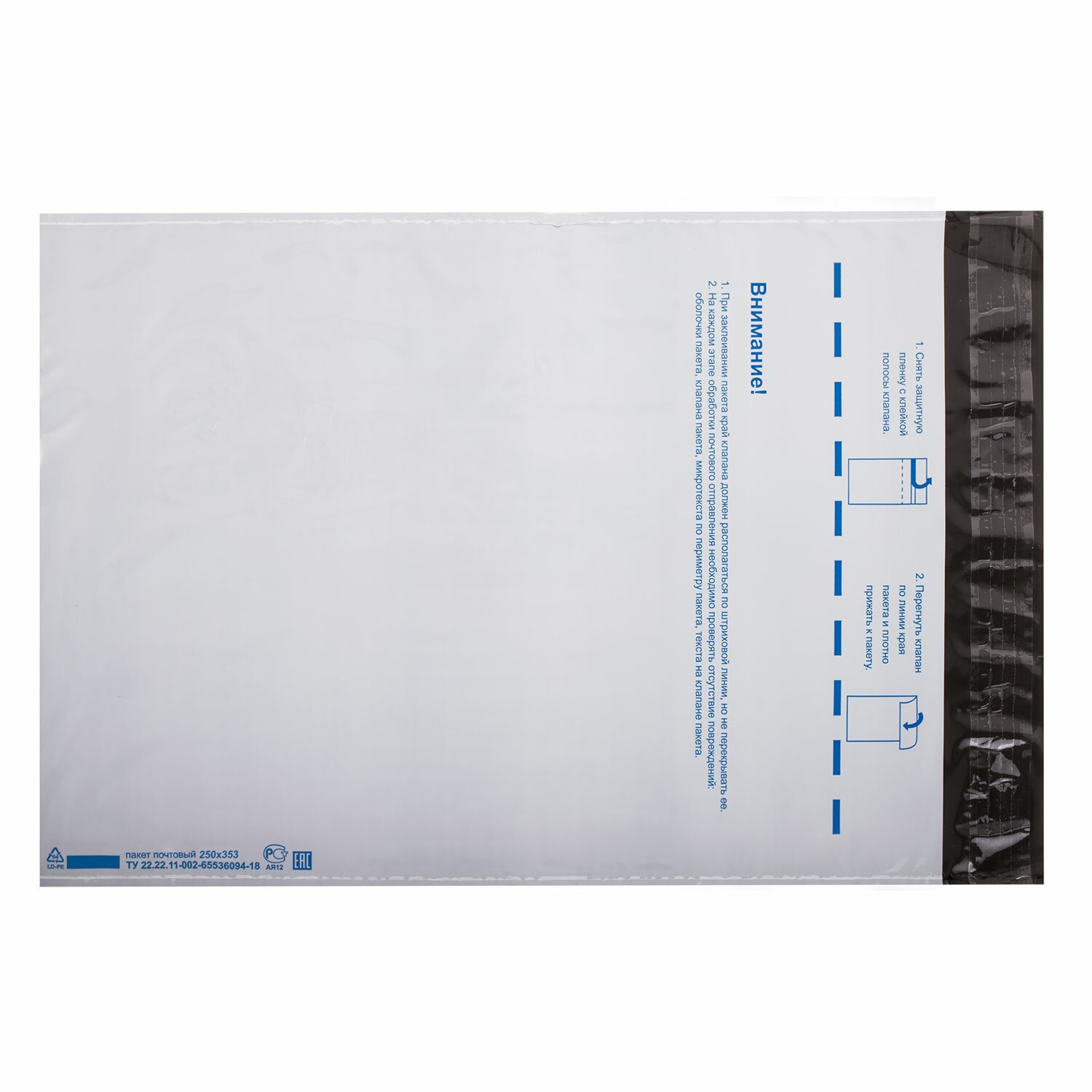 Конверт-пакеты ПОЛИЭТИЛЕН В4 (250х353 мм) до 300 л., отрывная лента, "Куда-Кому", КОМПЛЕКТ 500 шт., 11004